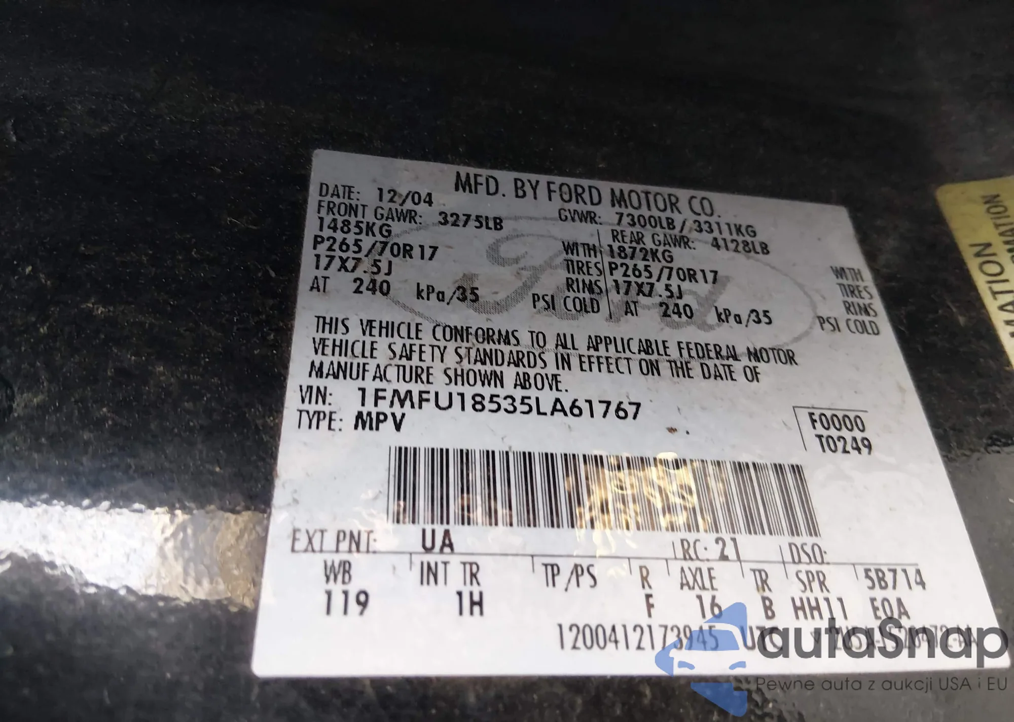 • VIN 1FMFU18535LA61767