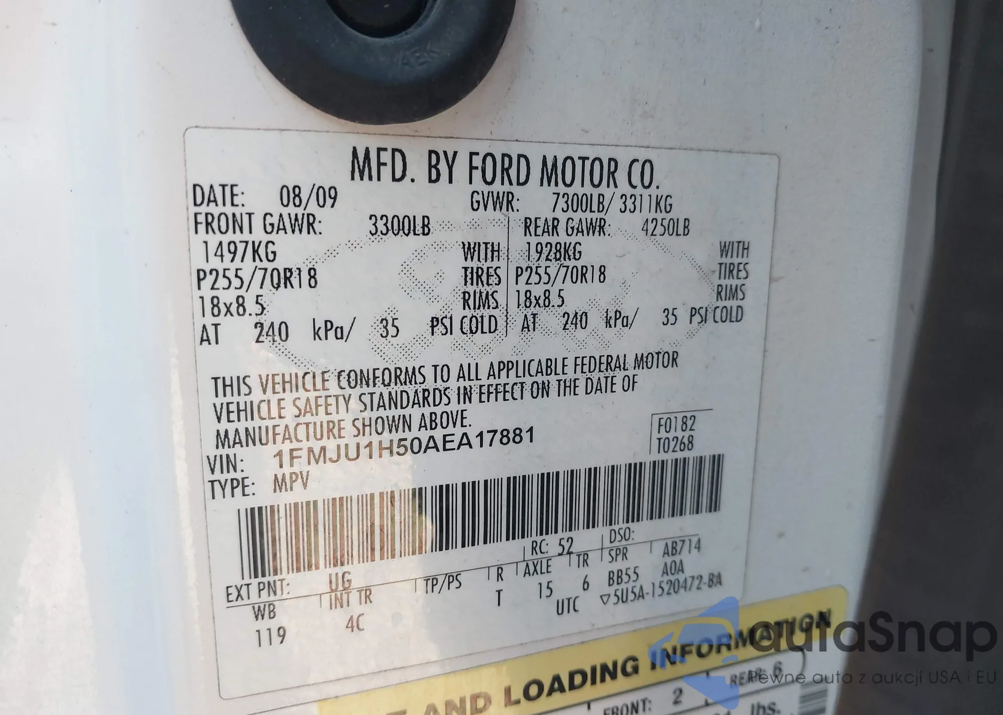 LOT: 44218298 VIN: 1FMJU1H50AEA17881