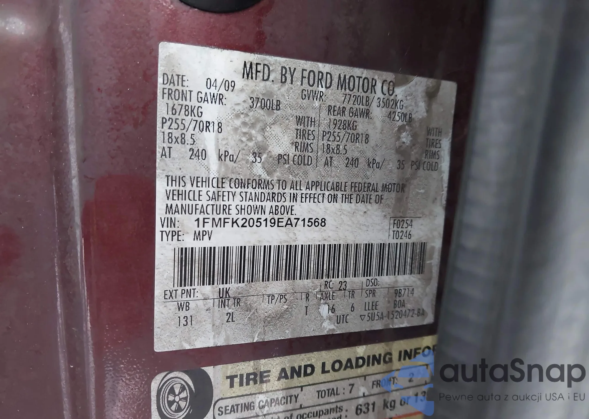 LOT: 44239872 VIN: 1FMFK20519EA71568