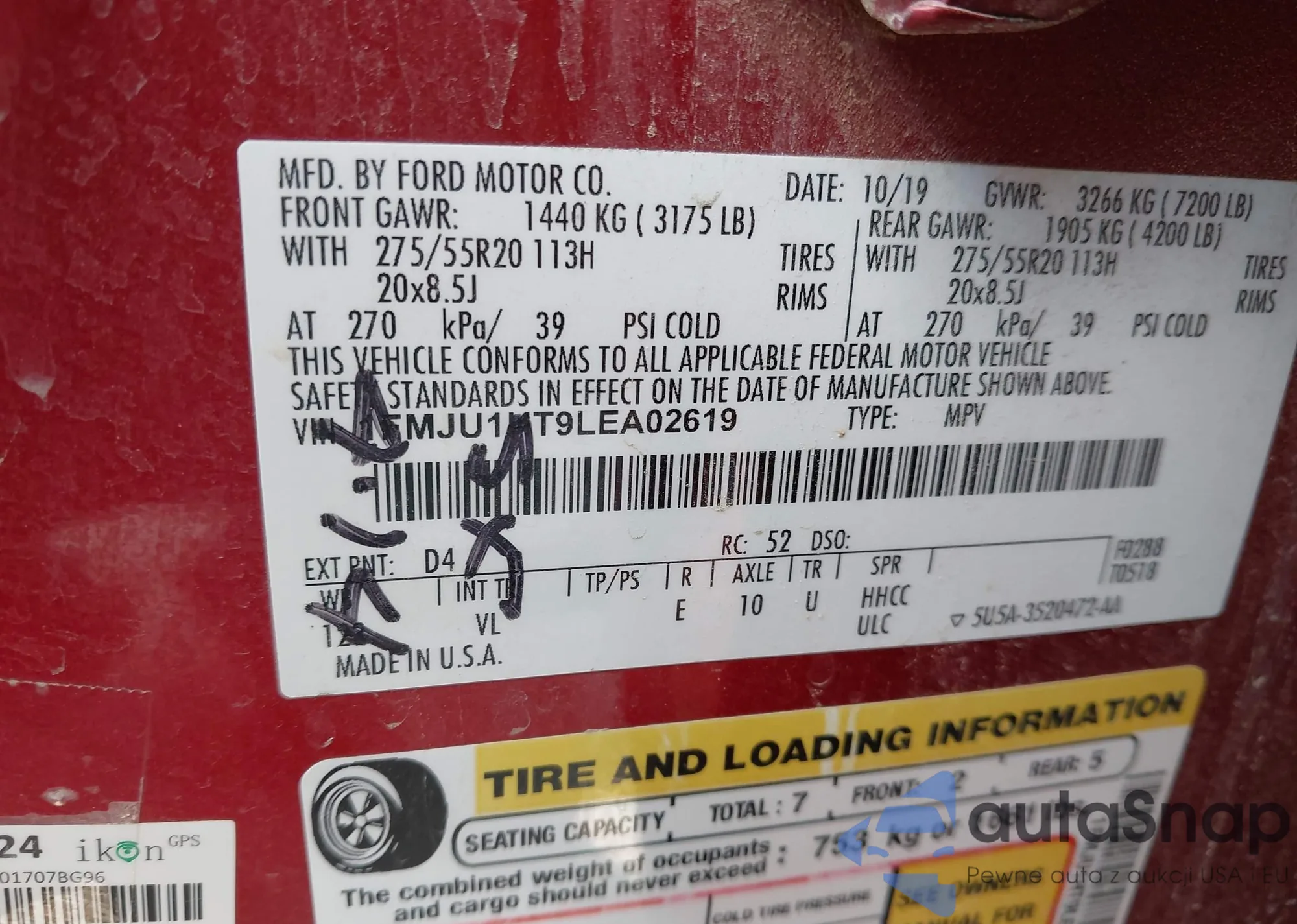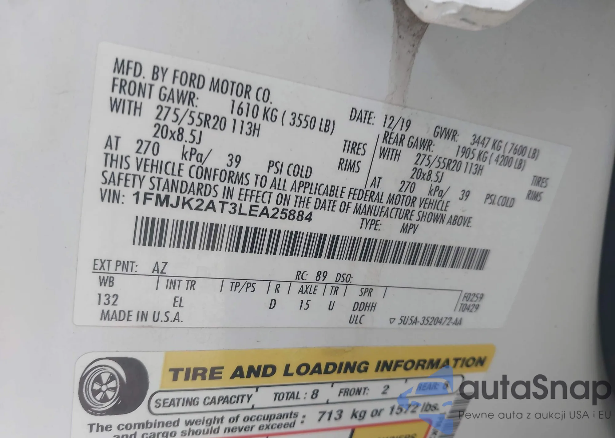 LOT: 43418238 VIN: 1FMJU1HT9LEA02619