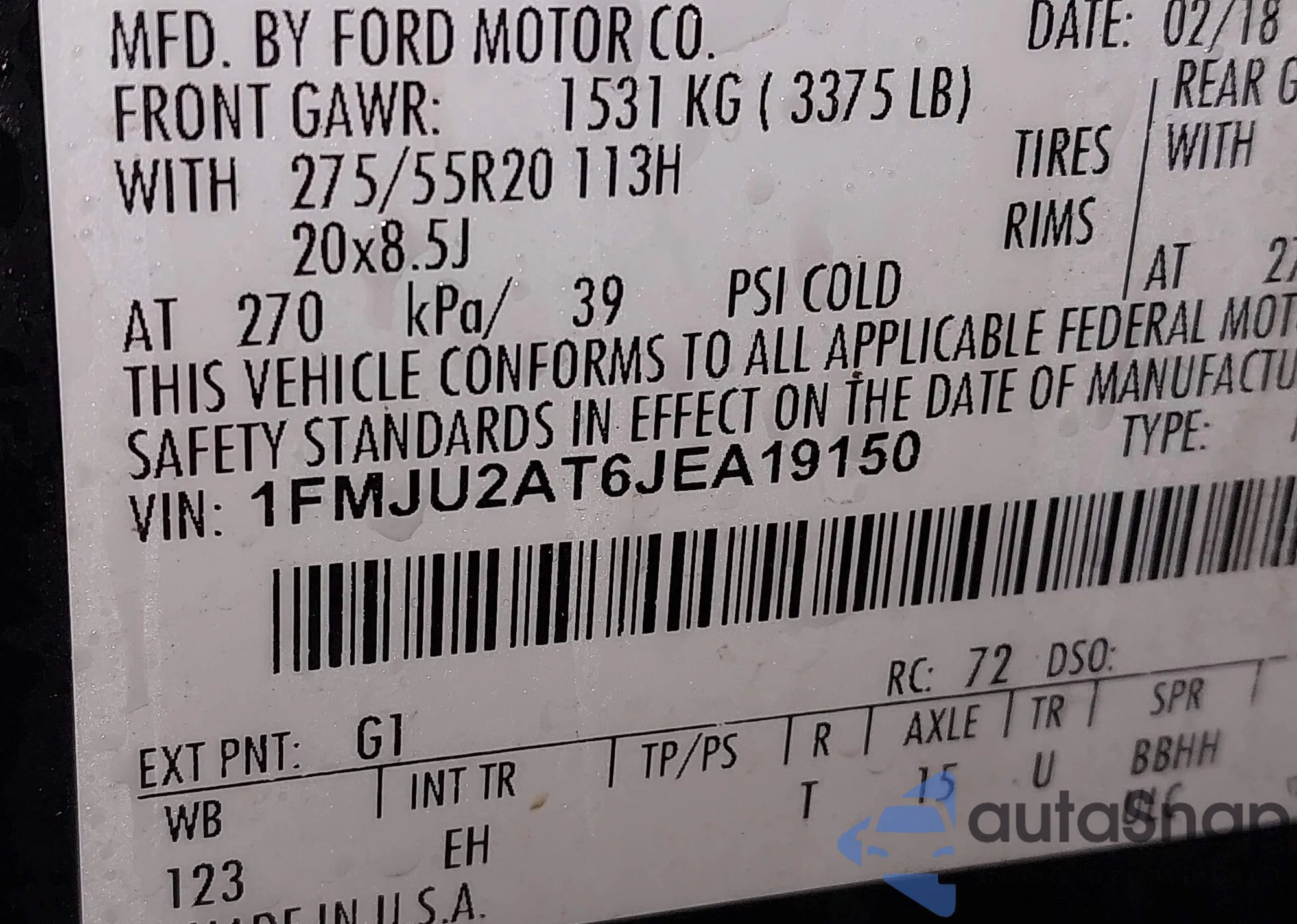 • VIN 1FMJU2AT6JEA19150