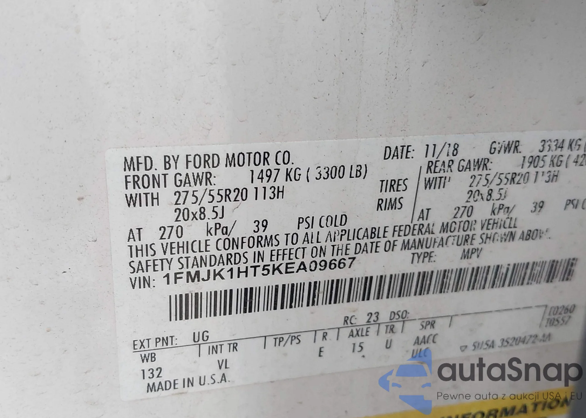 • VIN 1FMJK1HT5KEA09667