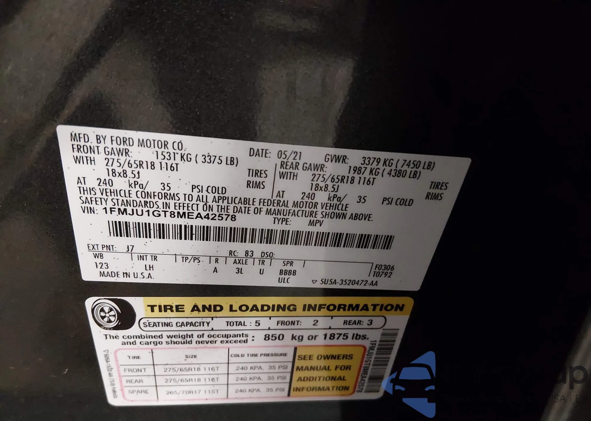 • VIN 1FMJU1GT8MEA42578