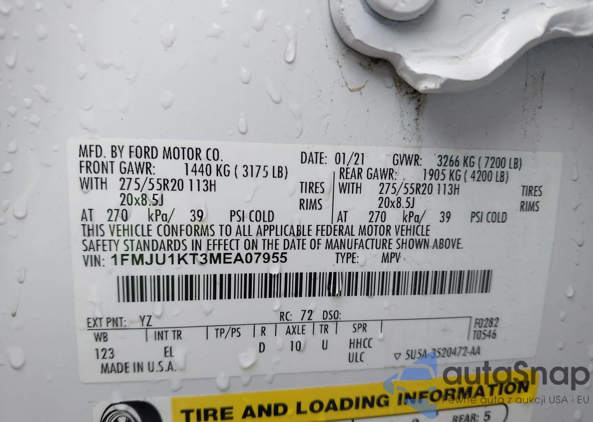 • VIN 1FMJU1KT3MEA07955
