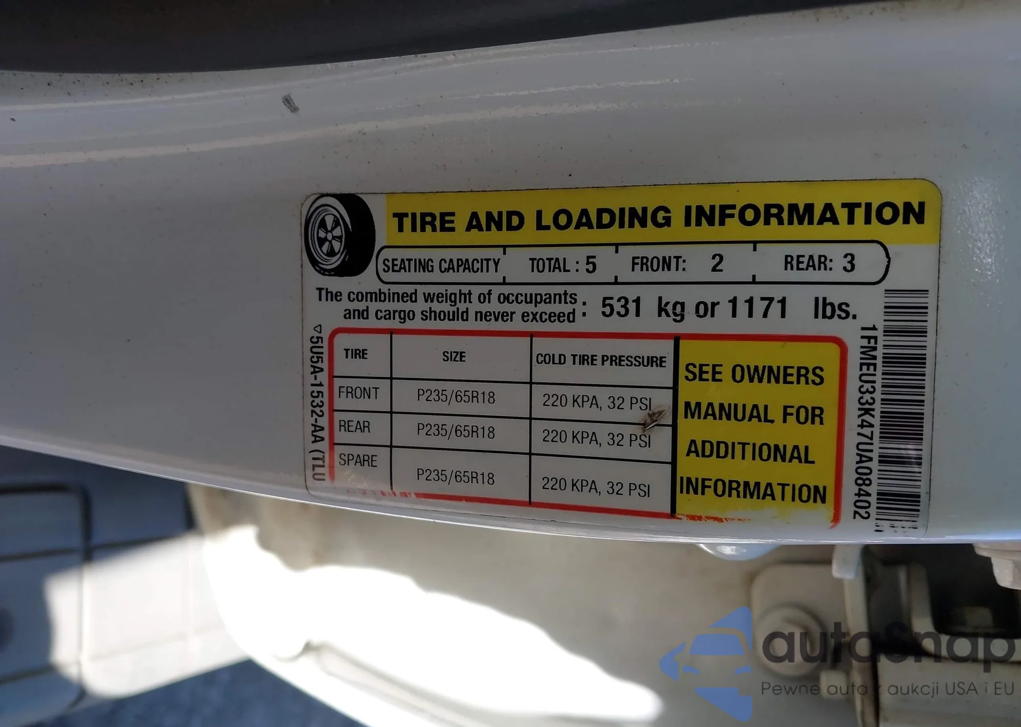 • VIN 1FMEU33K47UA08402