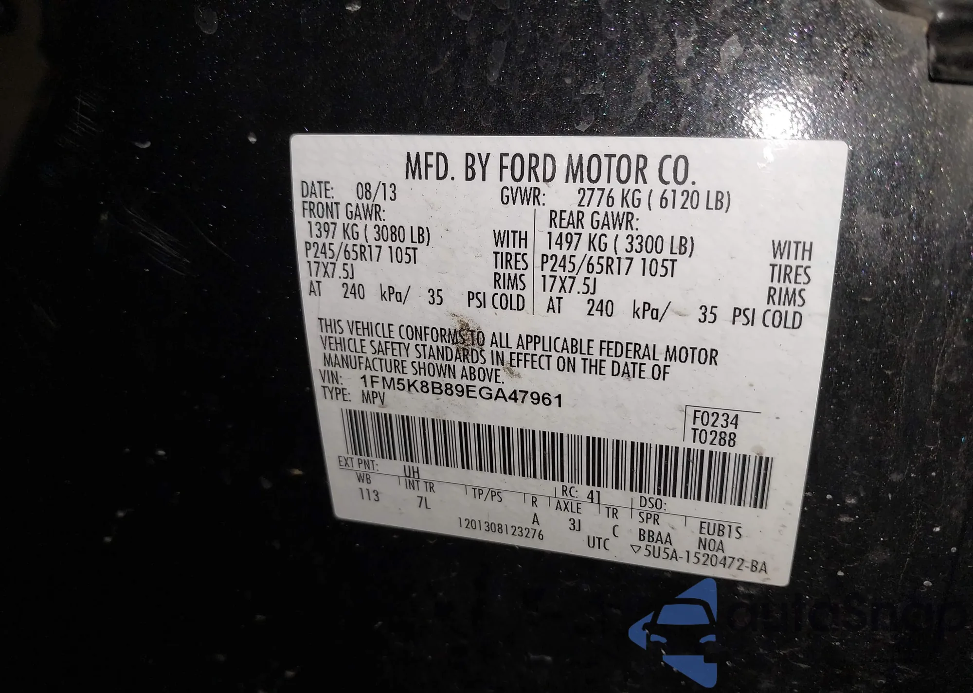 LOT: 43996659 VIN: 1FM5K8B89EGA47961