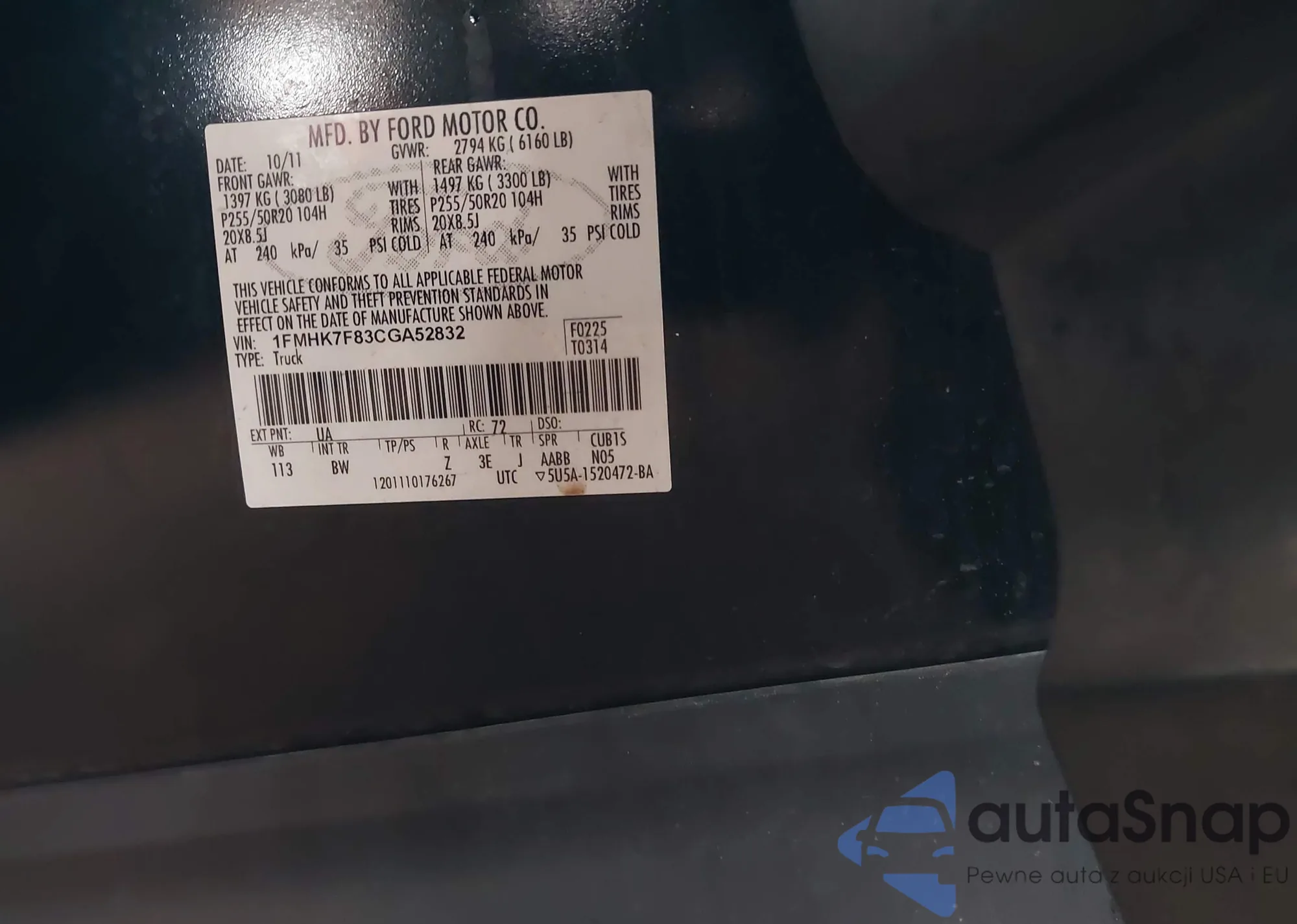 LOT: 44097605 VIN: 1FMHK7F83CGA52832
