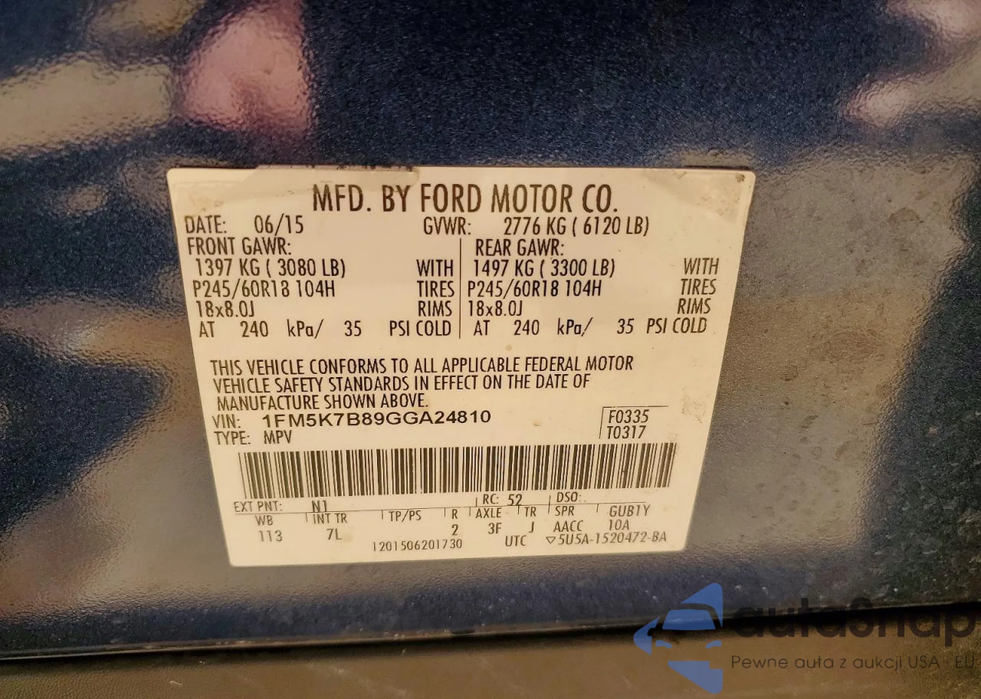 LOT: 92070235 VIN: 1FMHK8F87BGA26870