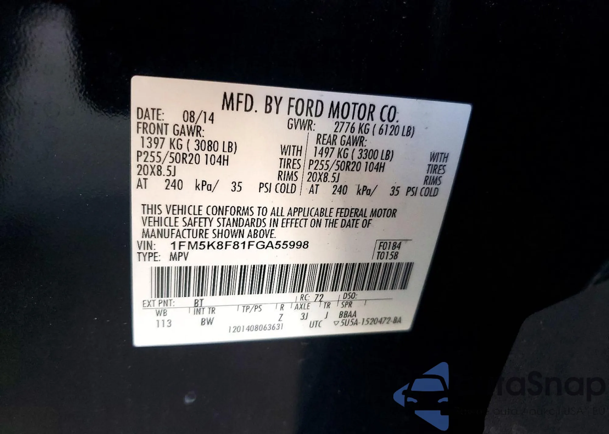 • VIN 1FM5K8D87EGC01211