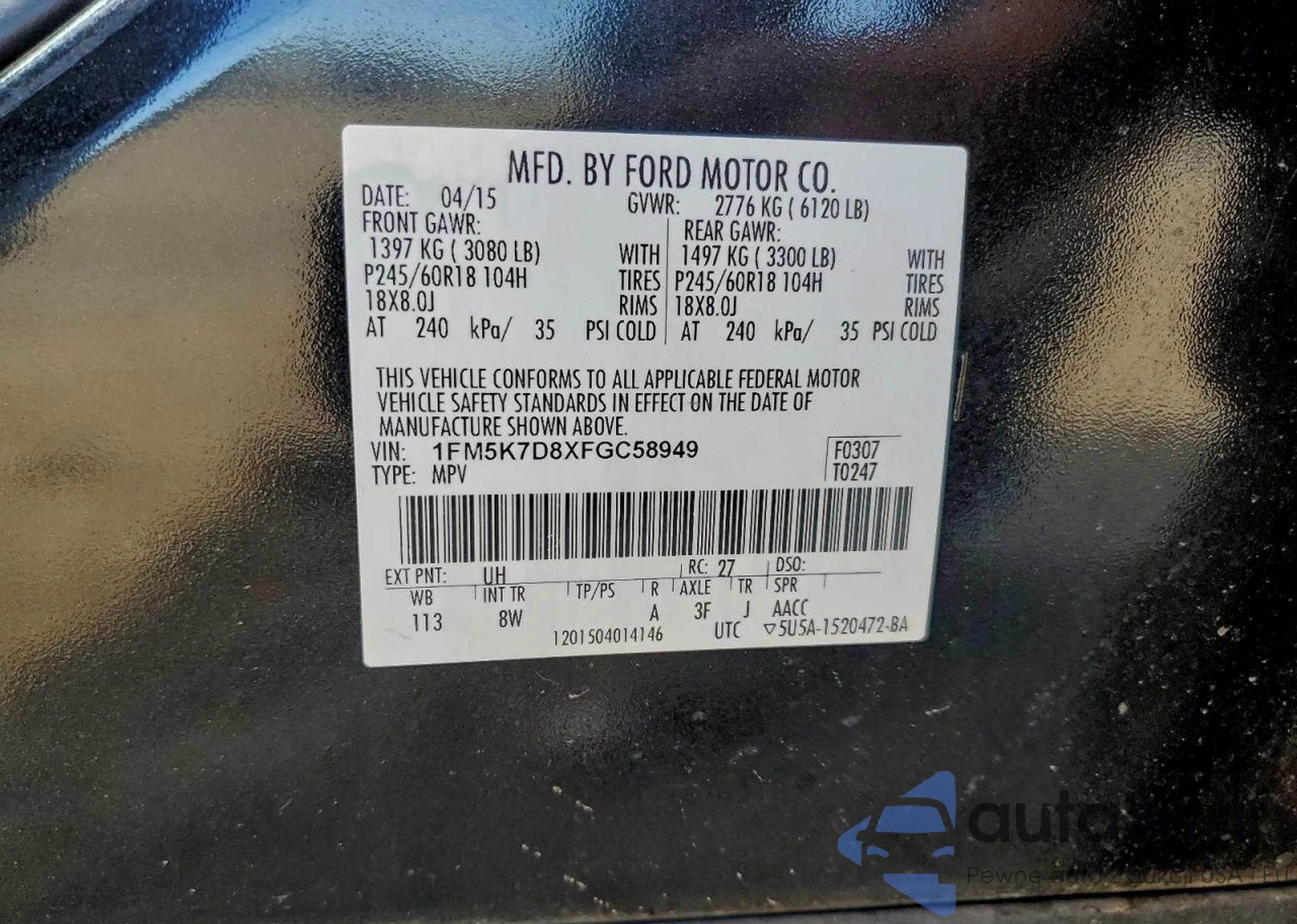 • VIN 1FM5K7D8XFGC58949