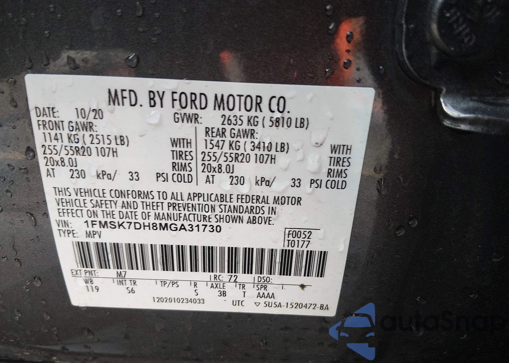 • VIN 1FMSK7DH8MGA31730
