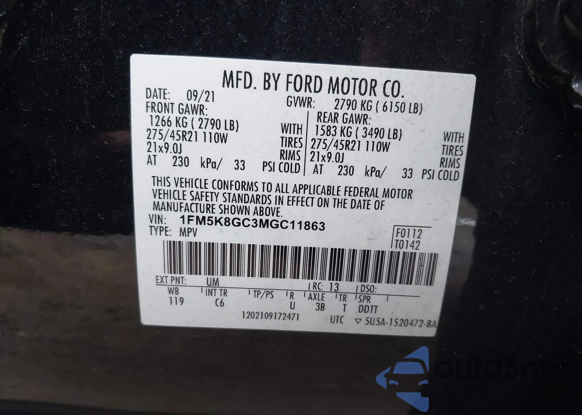 • VIN 1FMSK8DHXMGC09773