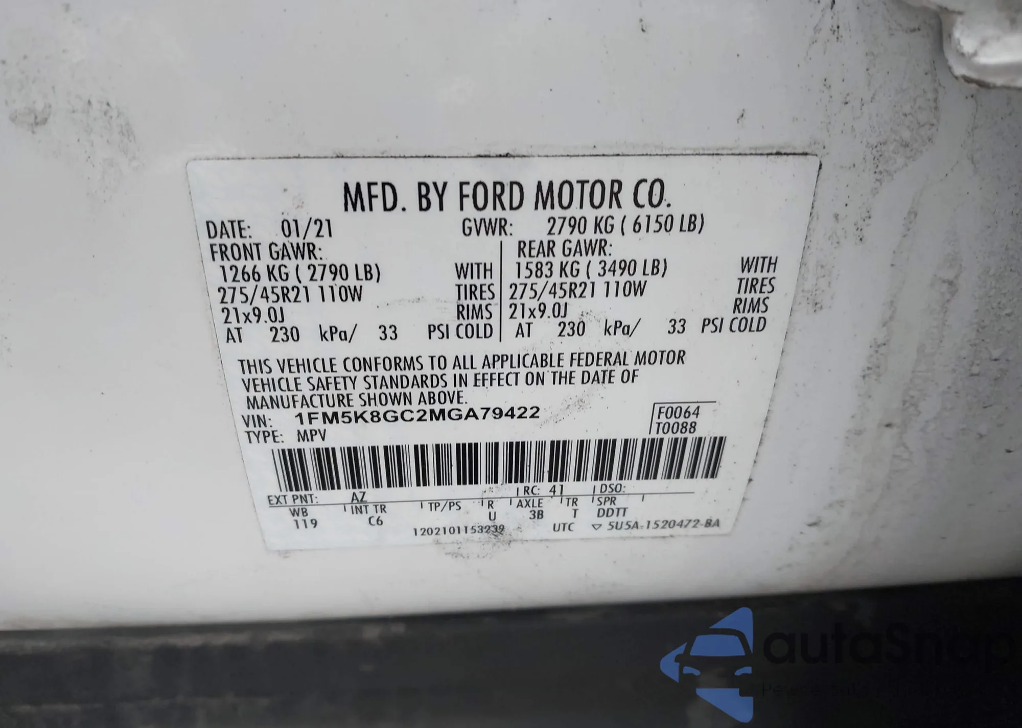 • VIN 1FM5K8GC2MGA79422