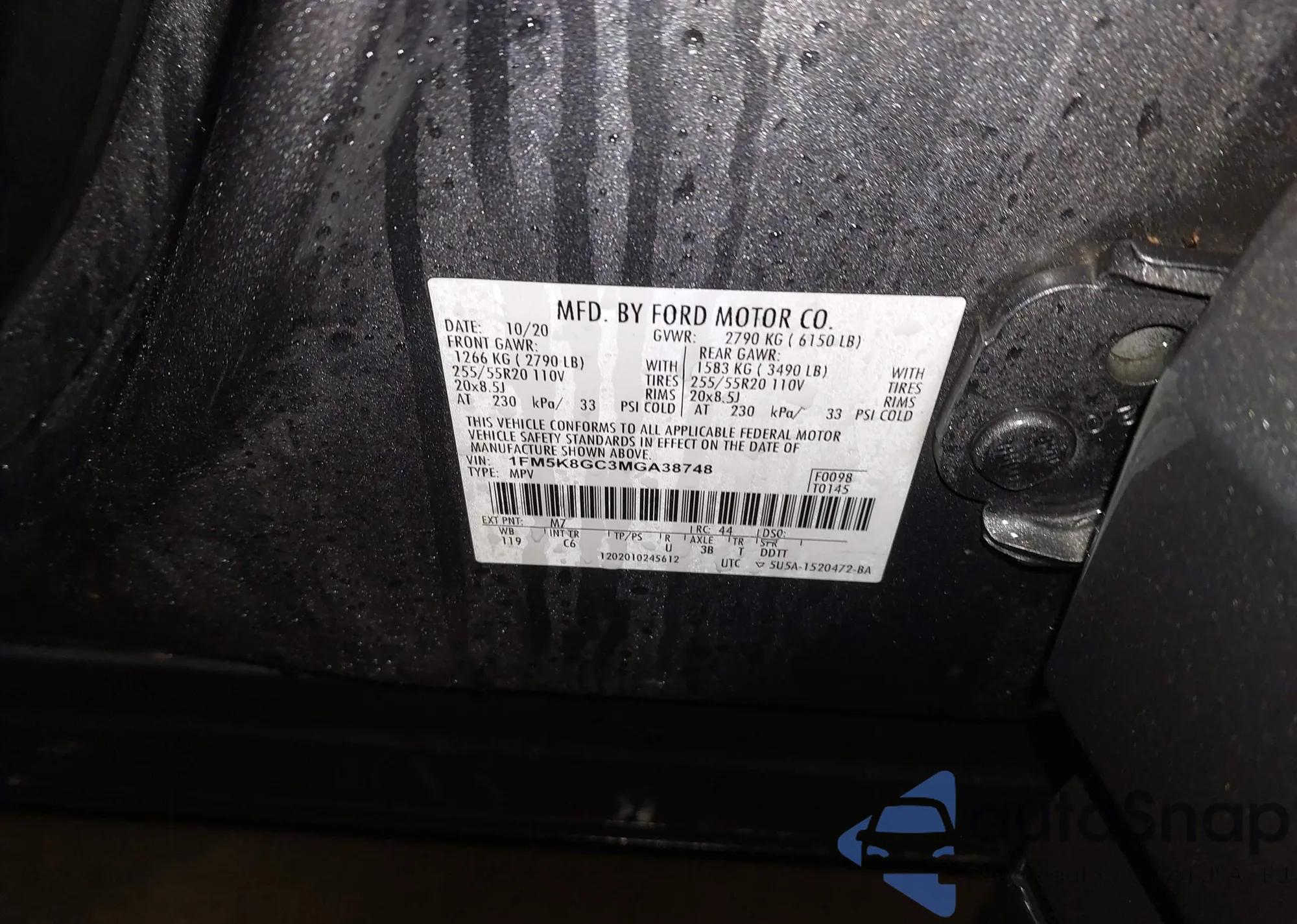 LOT: 44256116 VIN: 1FM5K8GC3MGA38748