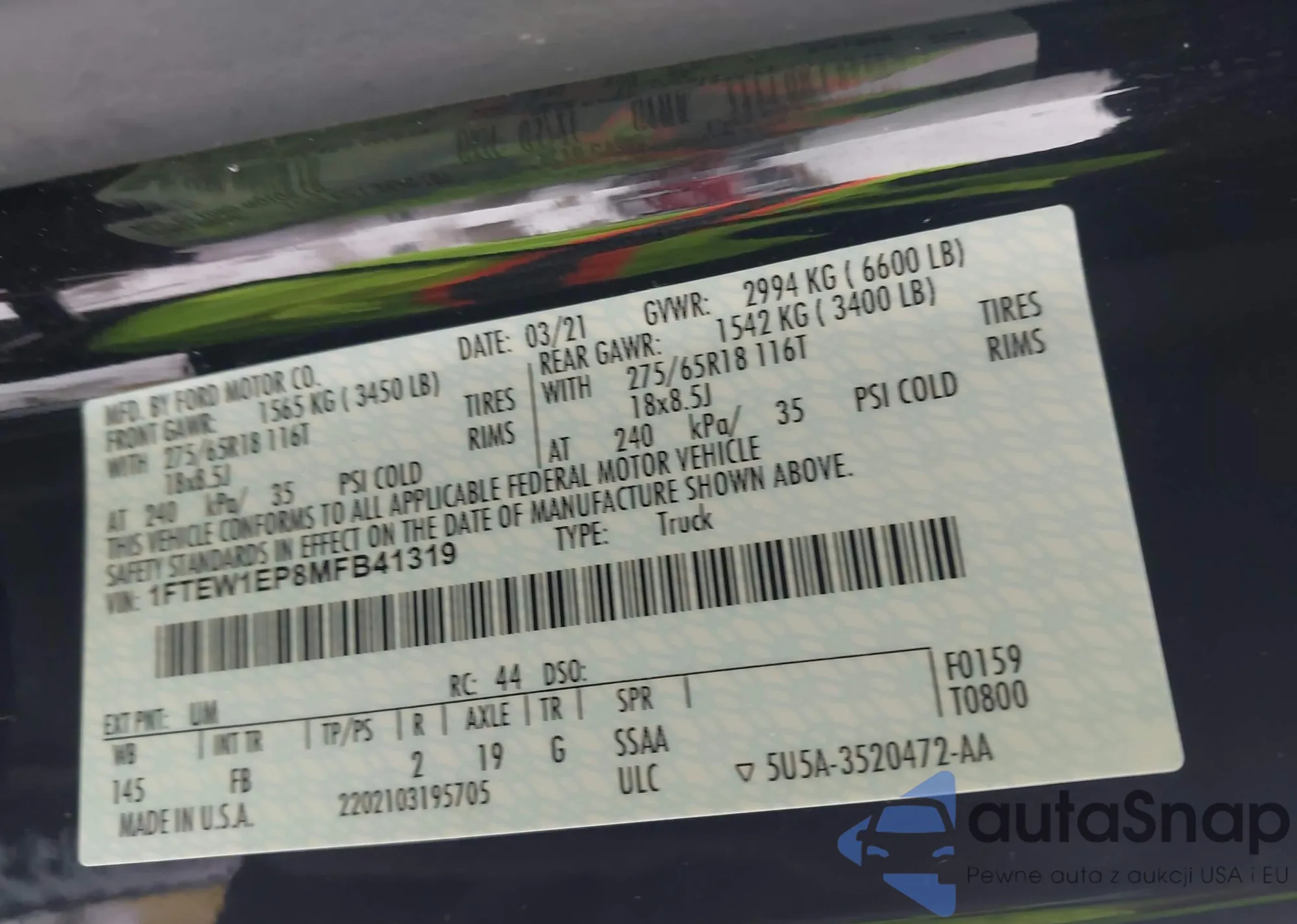 LOT: 44049761 VIN: 1FTEW1EP8MFB41319