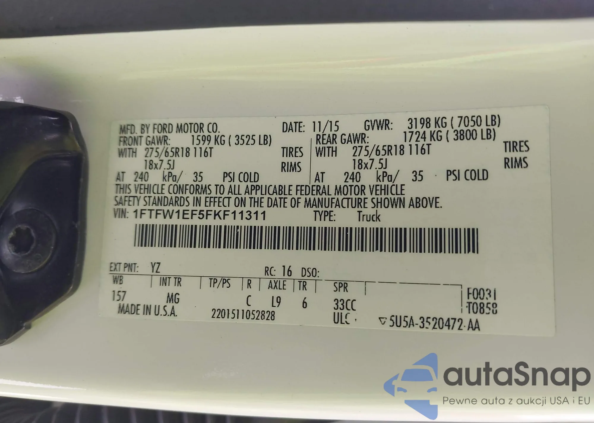 • VIN 1FTFW1EF5FKF11311