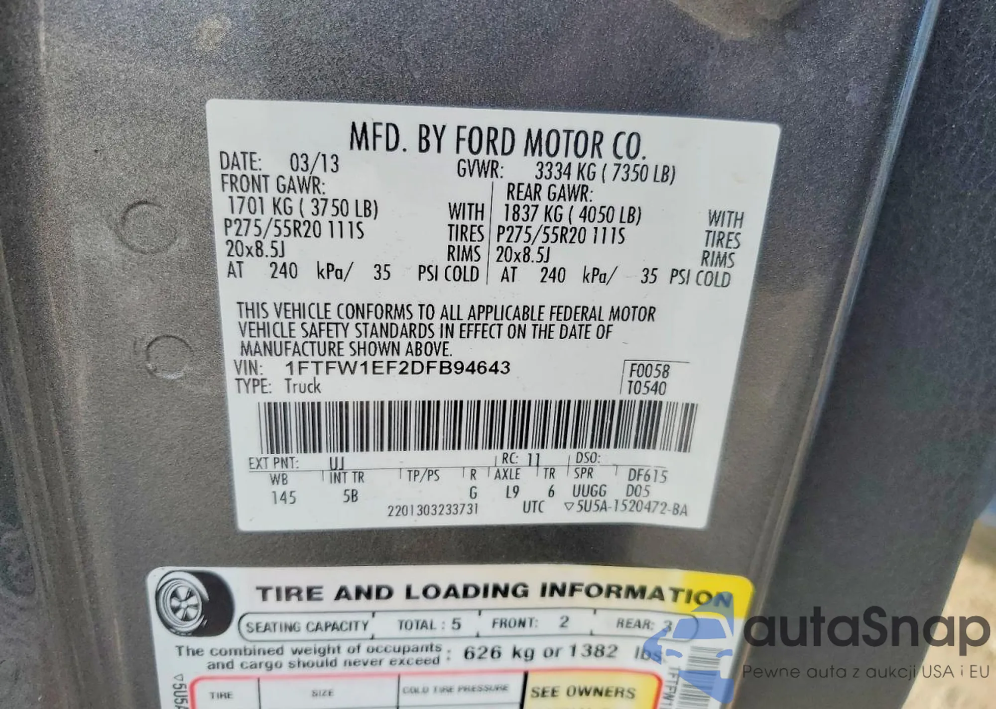 LOT: 73872275 VIN: 1FTFW1EF2DFB94643