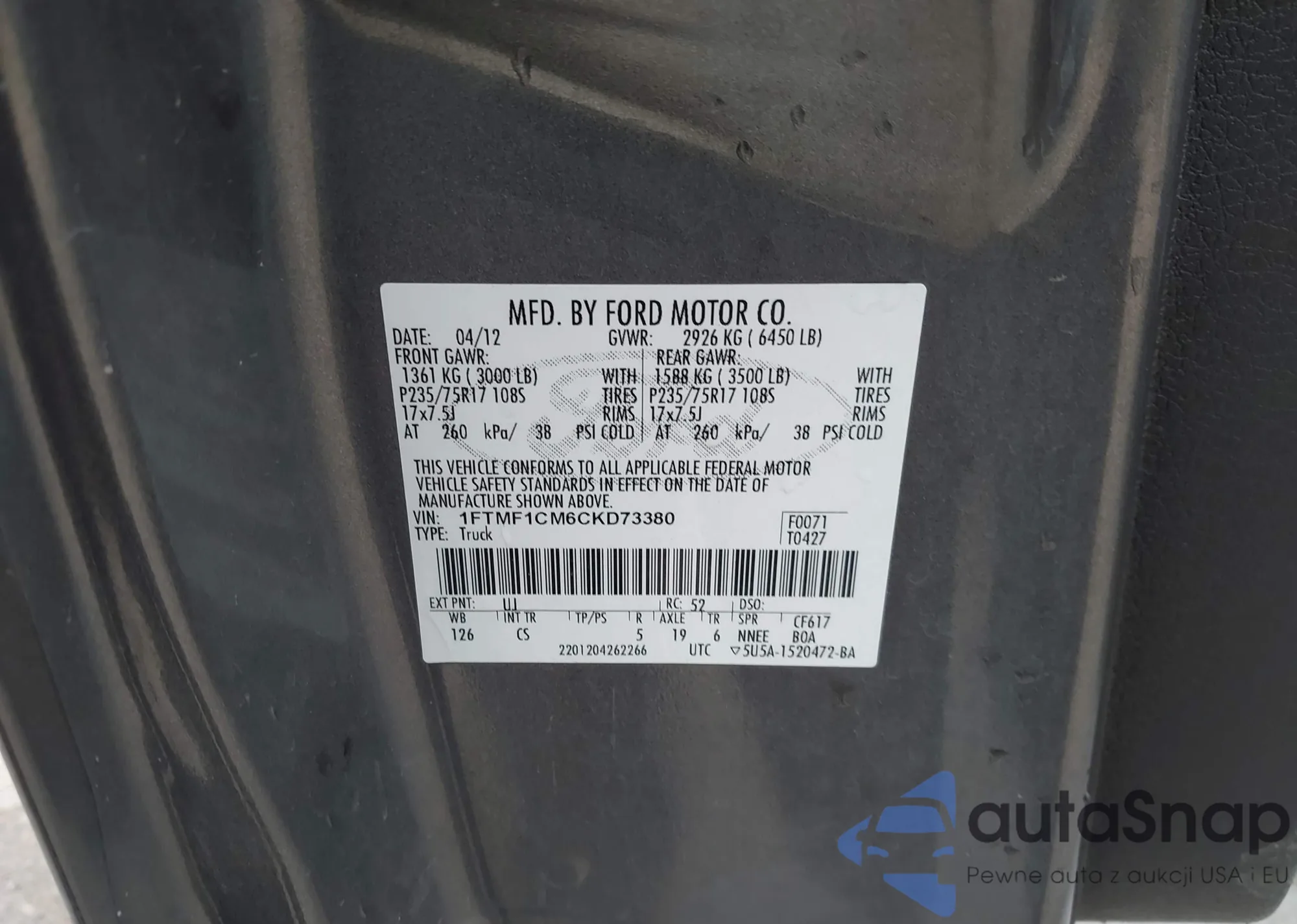 • VIN 1FTMF1CM6CKD73380