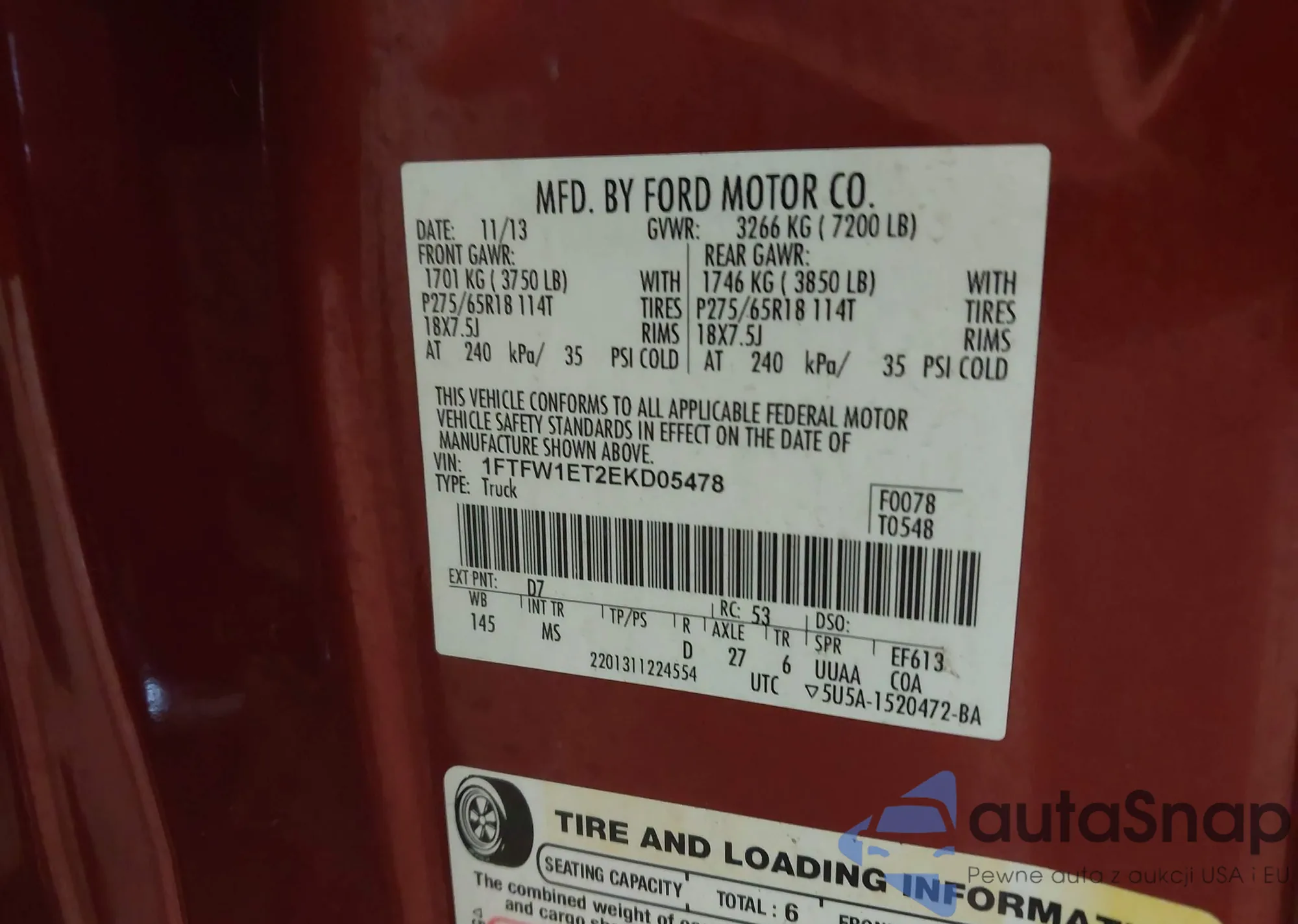 • VIN 1FTFW1ET2EKD05478