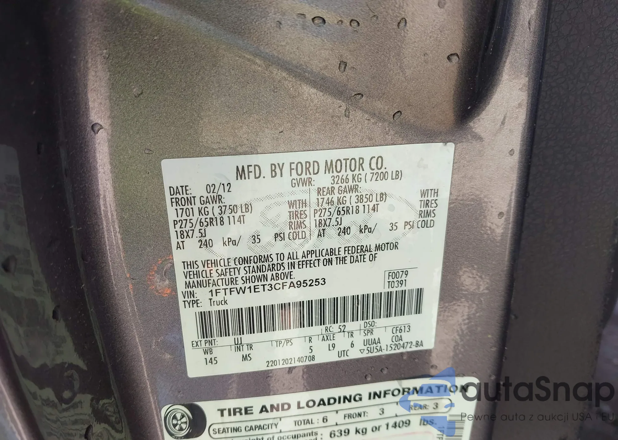 • VIN 1FTFW1ET3CFA95253
