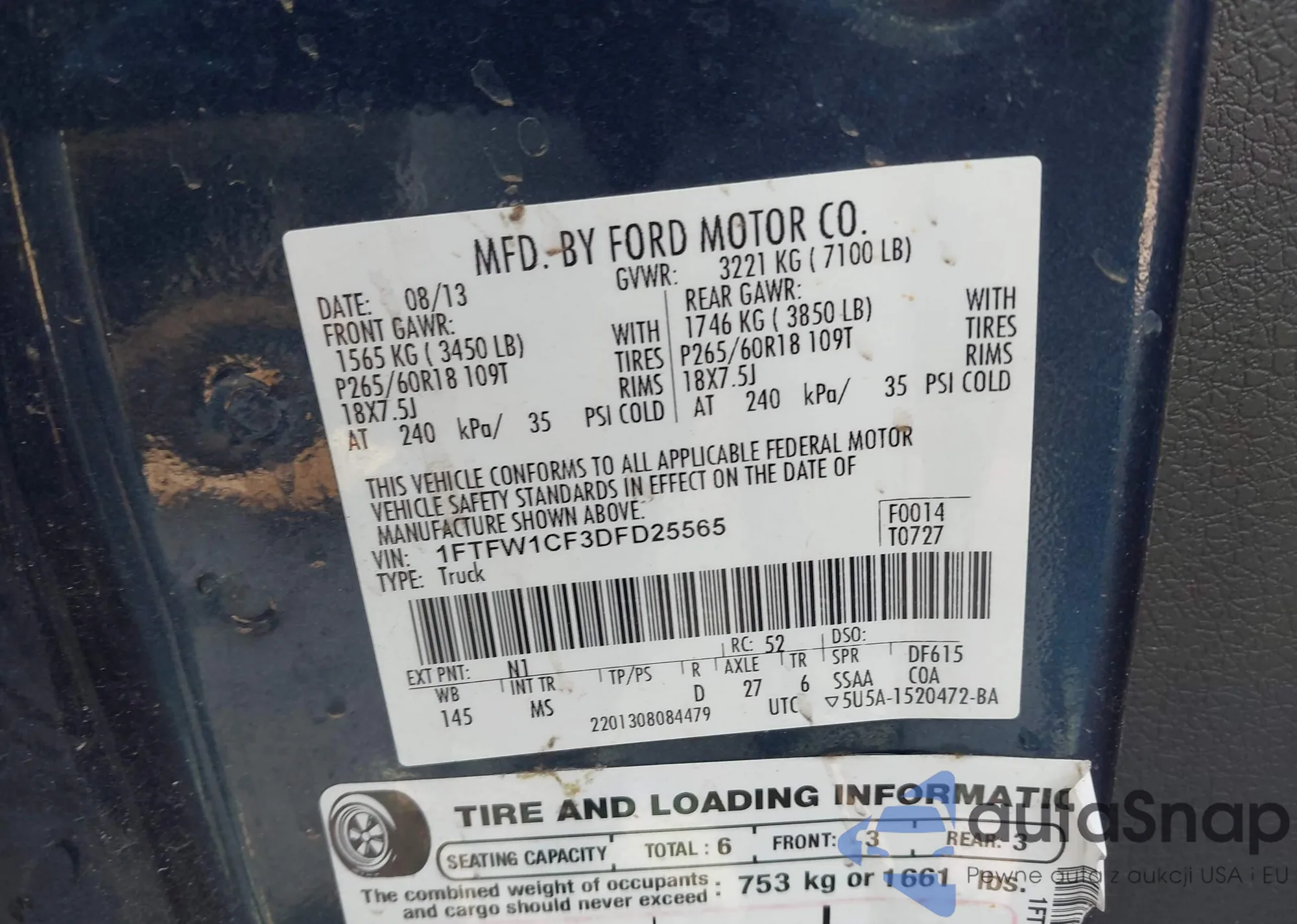 • VIN 1FTFW1CF3DFD25565