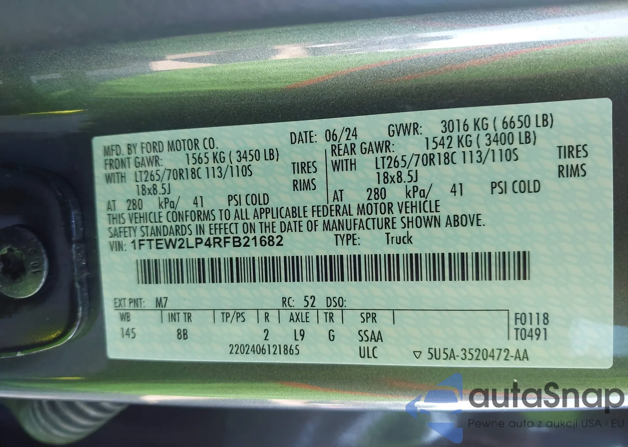 • VIN 1FTEW2LP4RFB21682