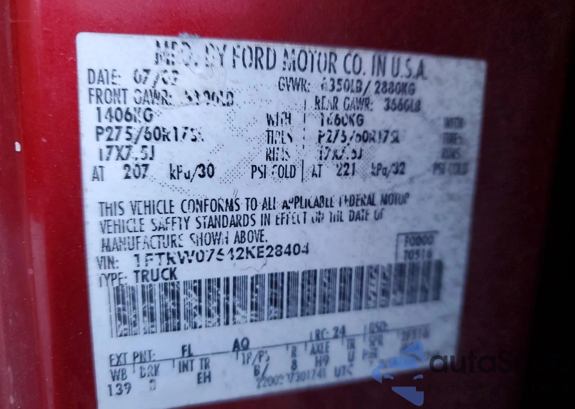 • VIN 1FTRW07642KE28404