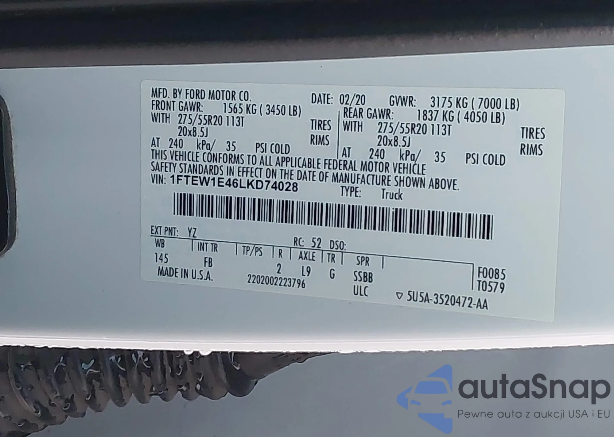 LOT: 44027125 VIN: 1FTEW1E46LKD74028