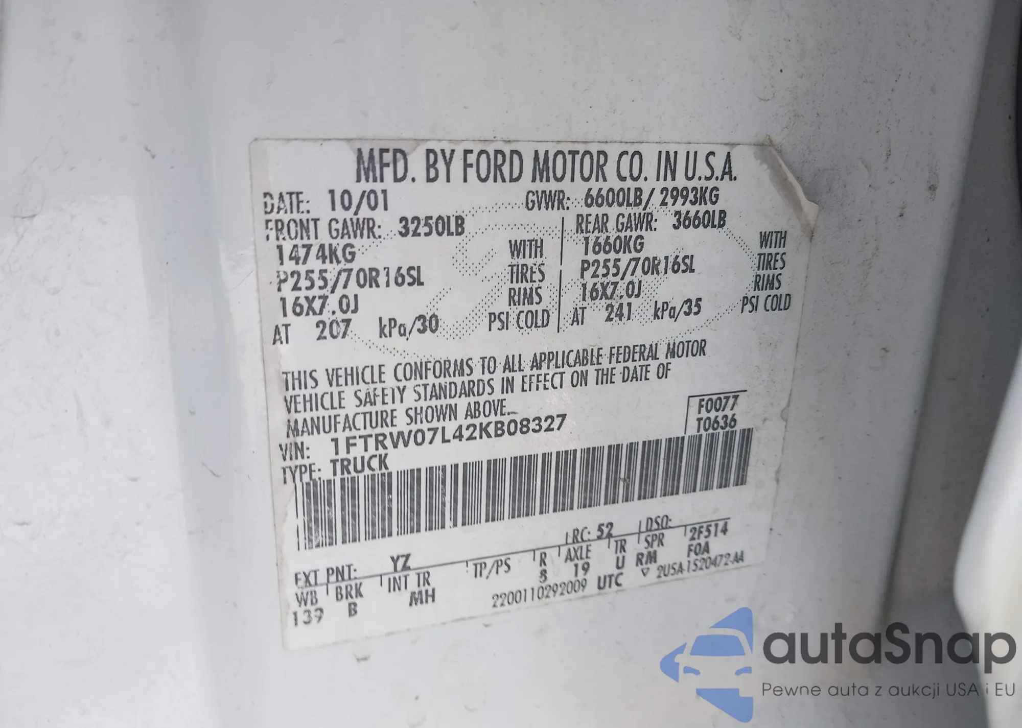 • VIN 1FTRW07L42KB08327