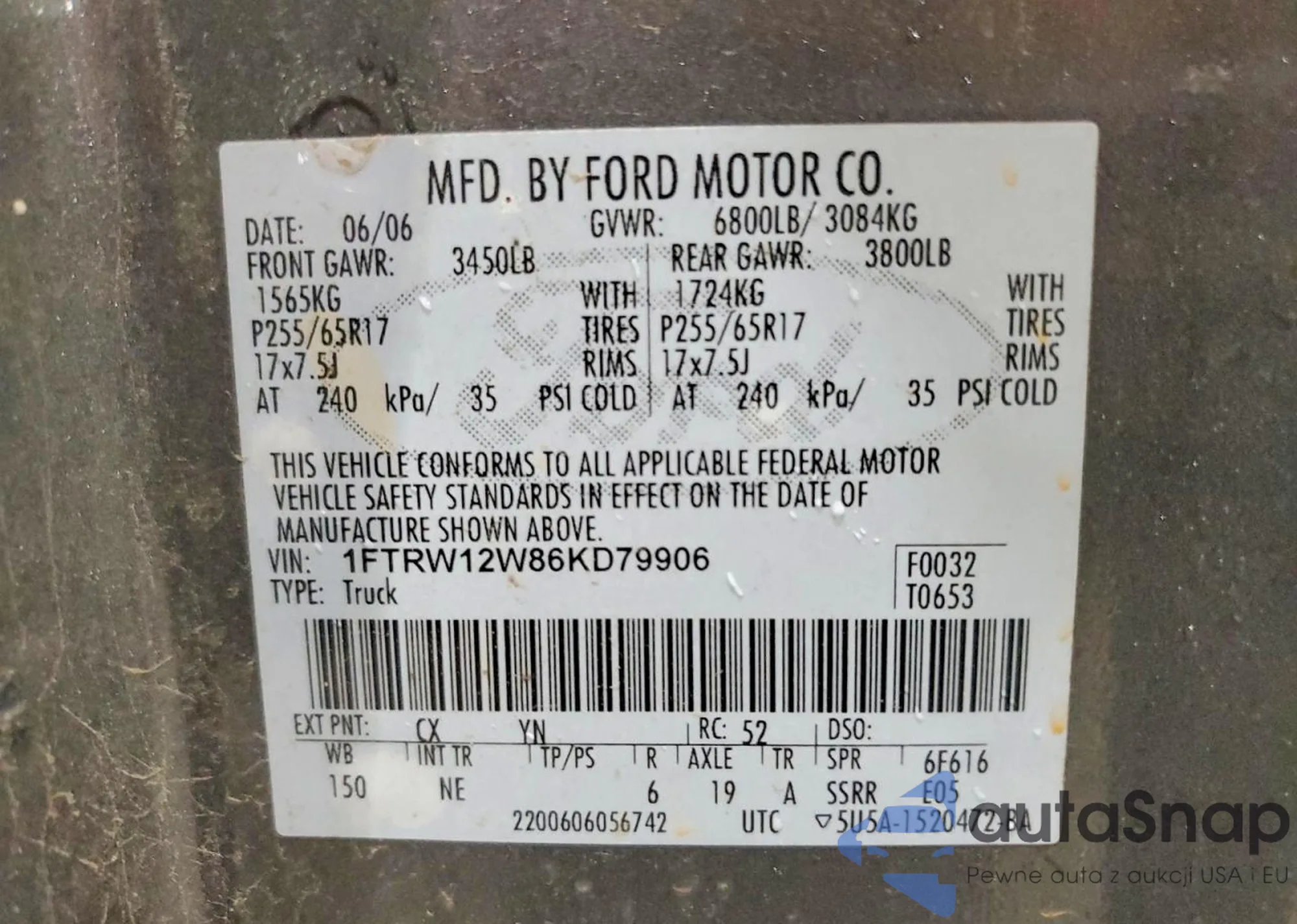 • VIN 1FTRW12W86KD79906