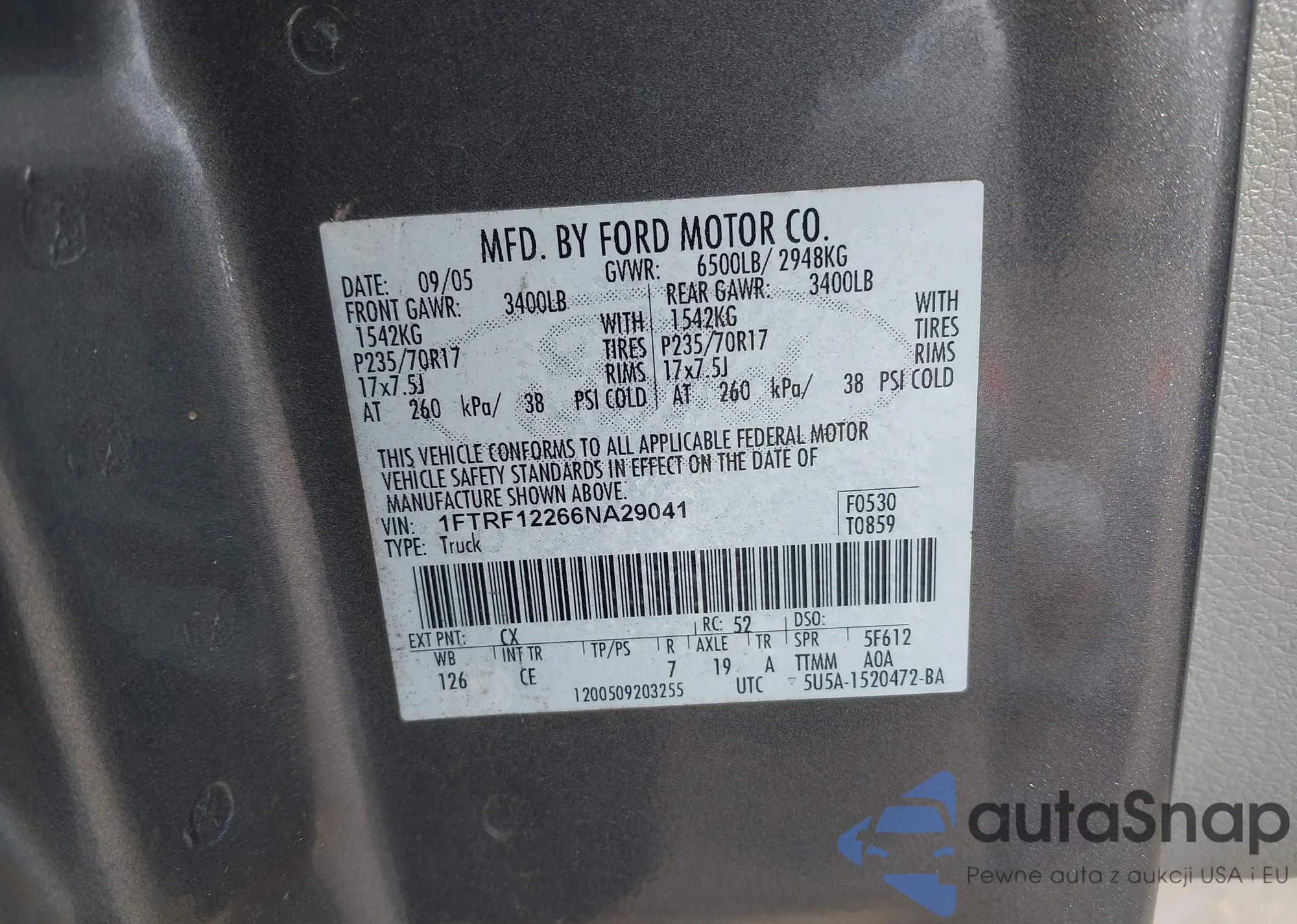 • VIN 1FTRF12266NA29041