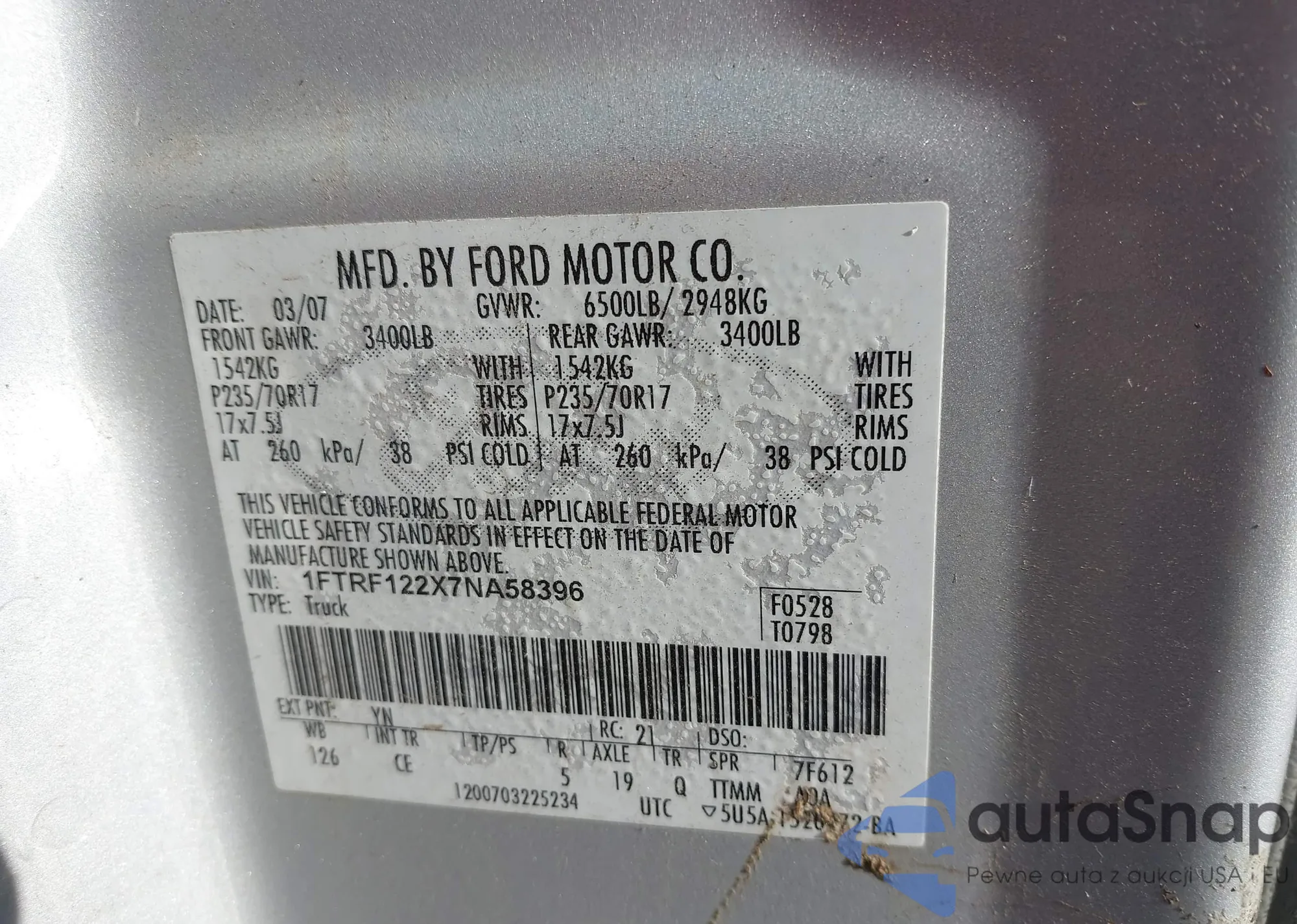 • VIN 1FTRF122X7NA58396