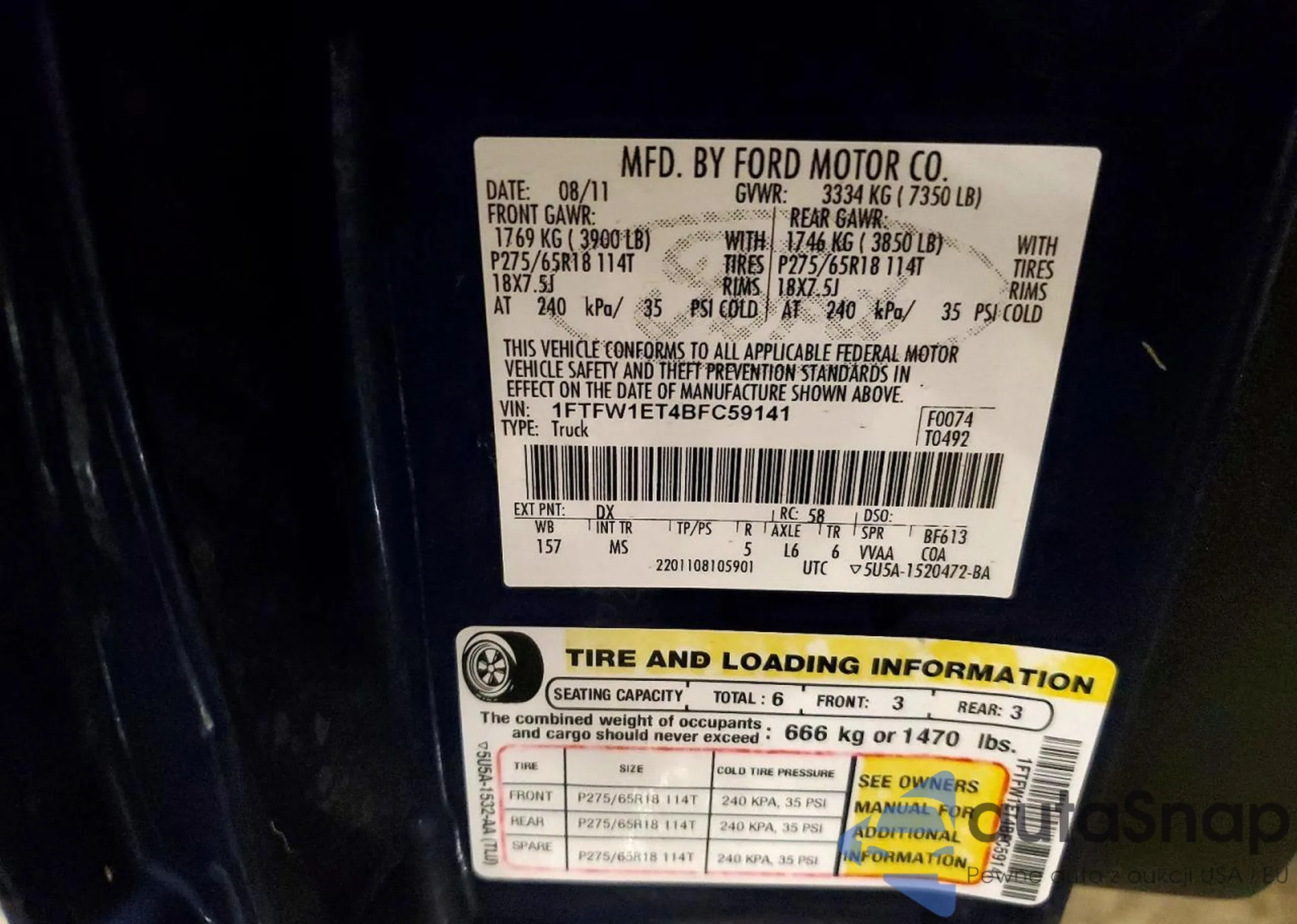 LOT: 75111195 VIN: 1FTFW1ET4BFC59141