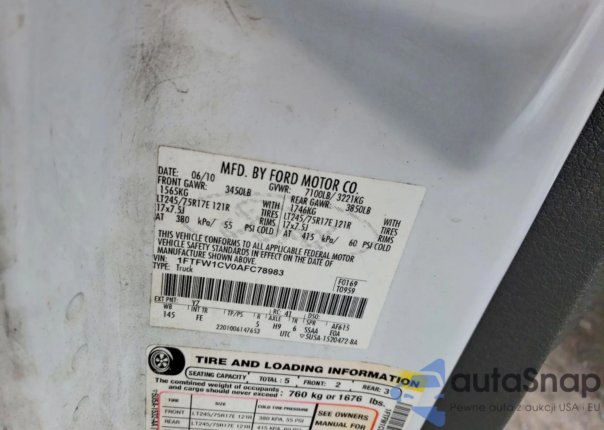 • VIN 1FTEW1C83AFC94892