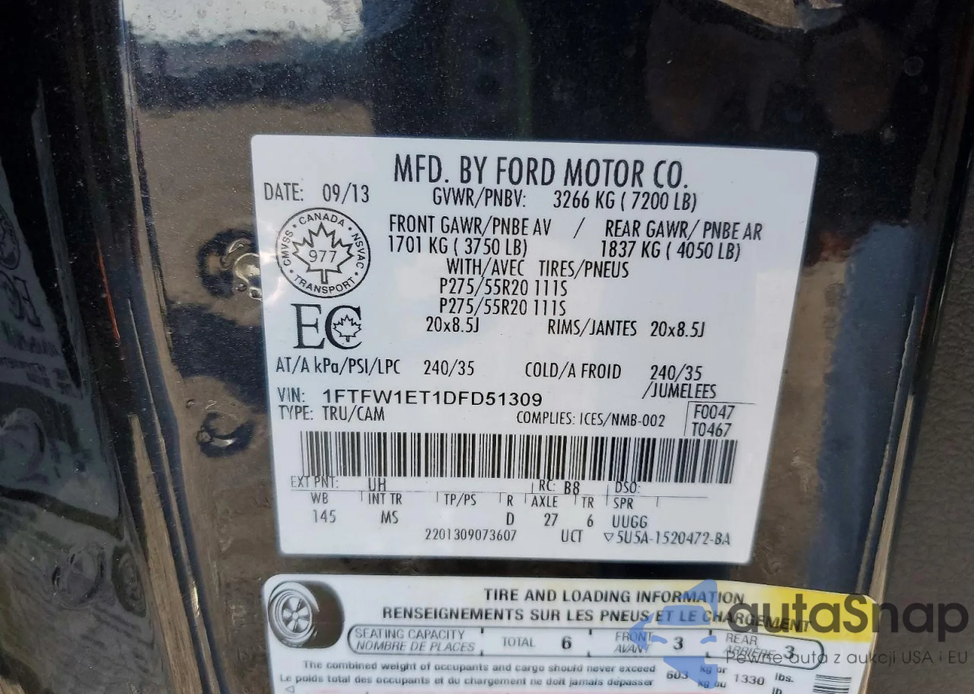 • VIN 1FTFW1ET1DFD51309