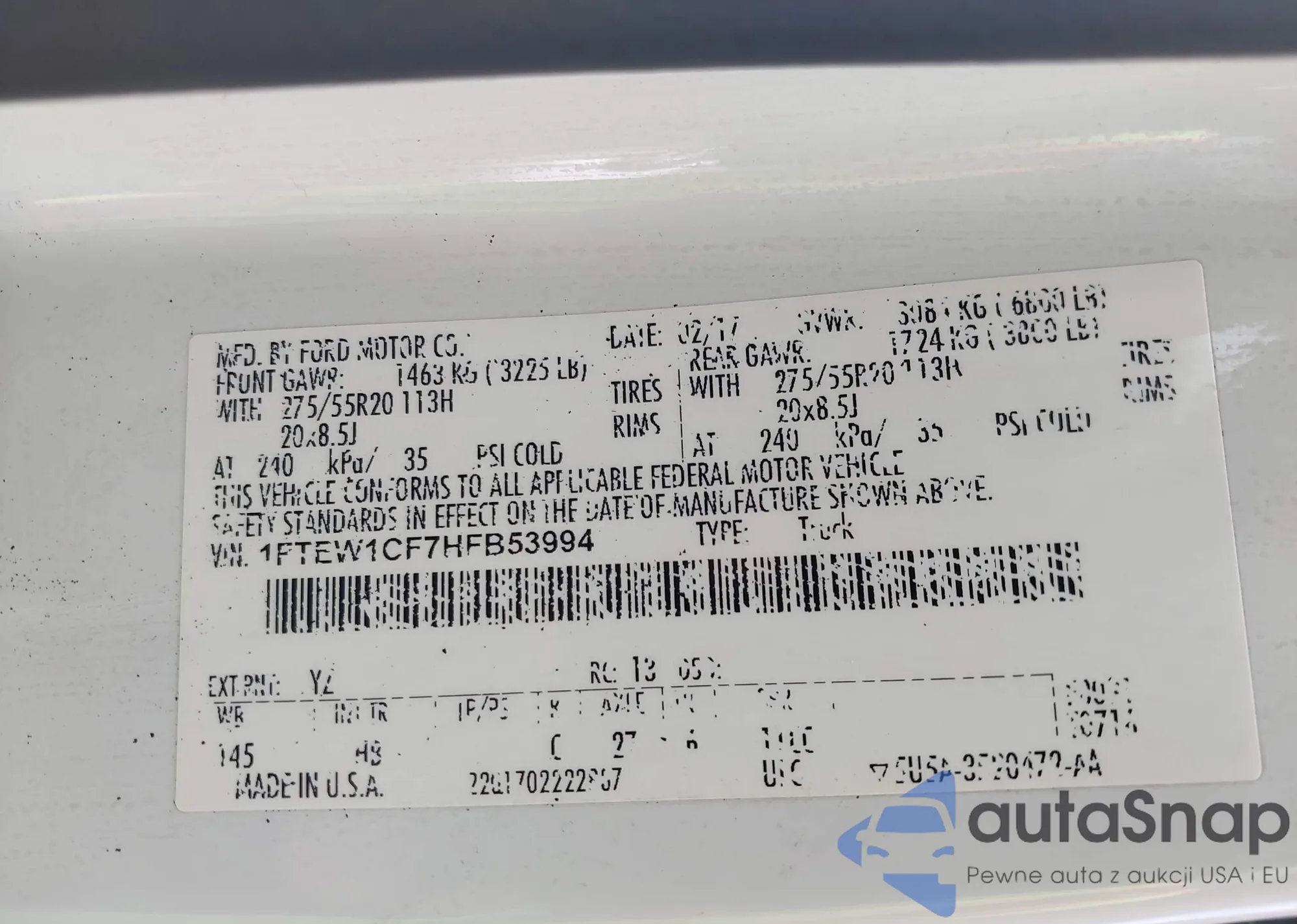 • VIN 1FTEW1CF7HFB53994