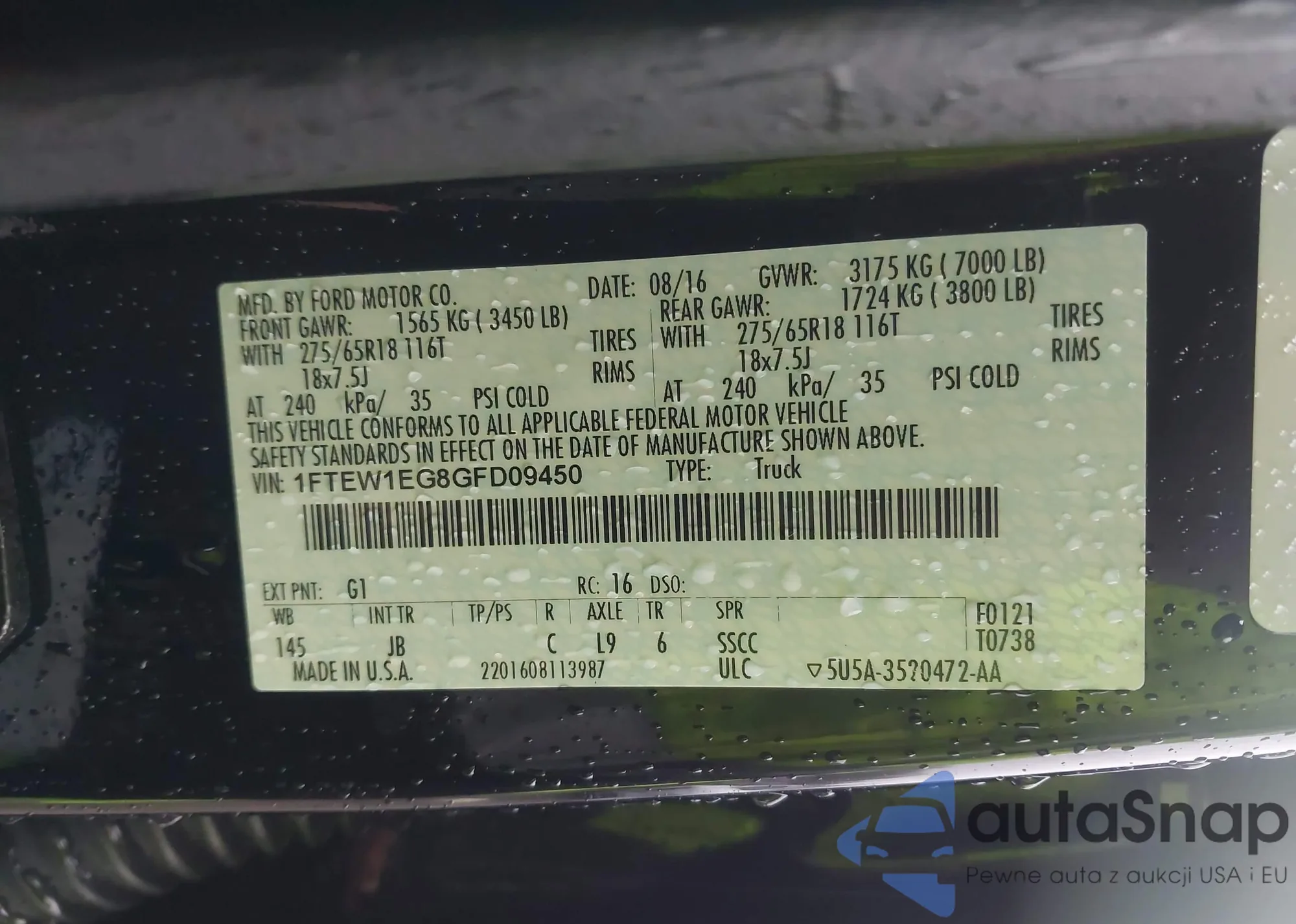 • VIN 1FTEW1EG8GFD09450