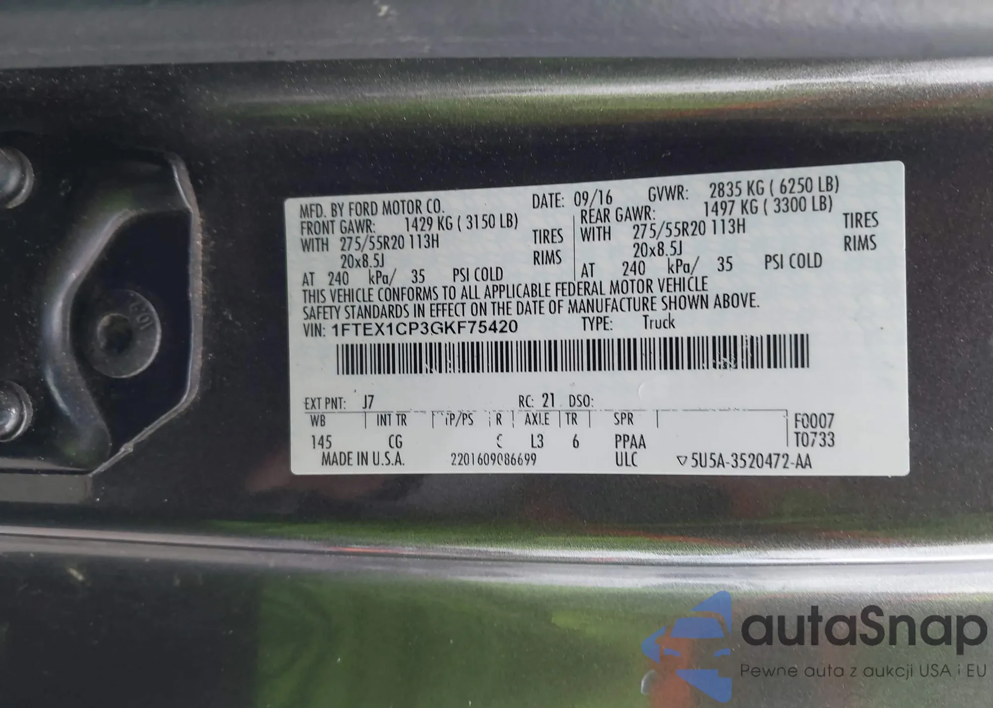 2016 Ford F-150 Xl из США, поврежденный, VIN 1FTEX1CP3GKF75420