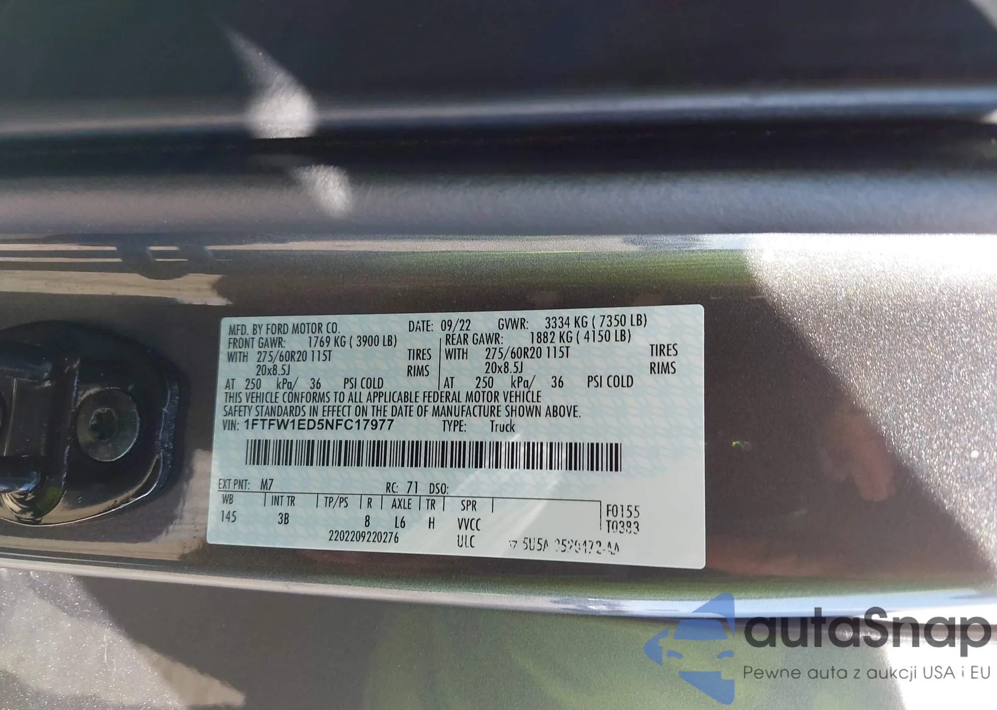 • VIN 1FTFW1ED5NFC17977