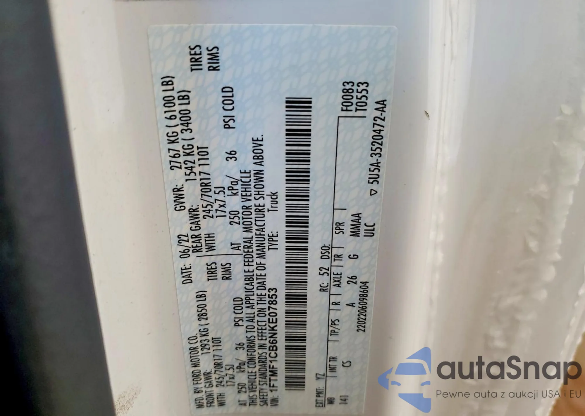 • VIN 1FTMF1CB6NKE07853