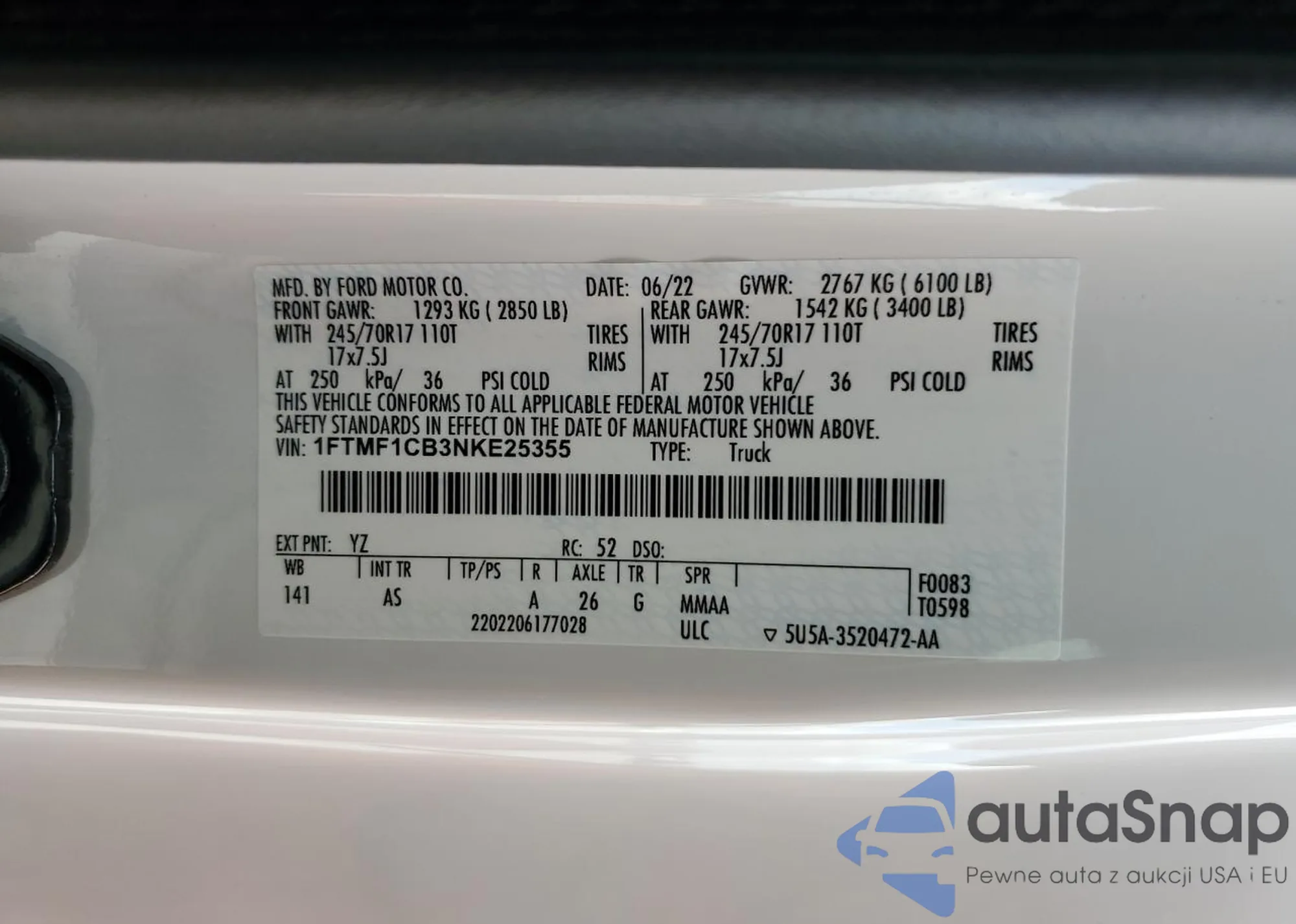 • VIN 1FTMF1CB3NKE25355