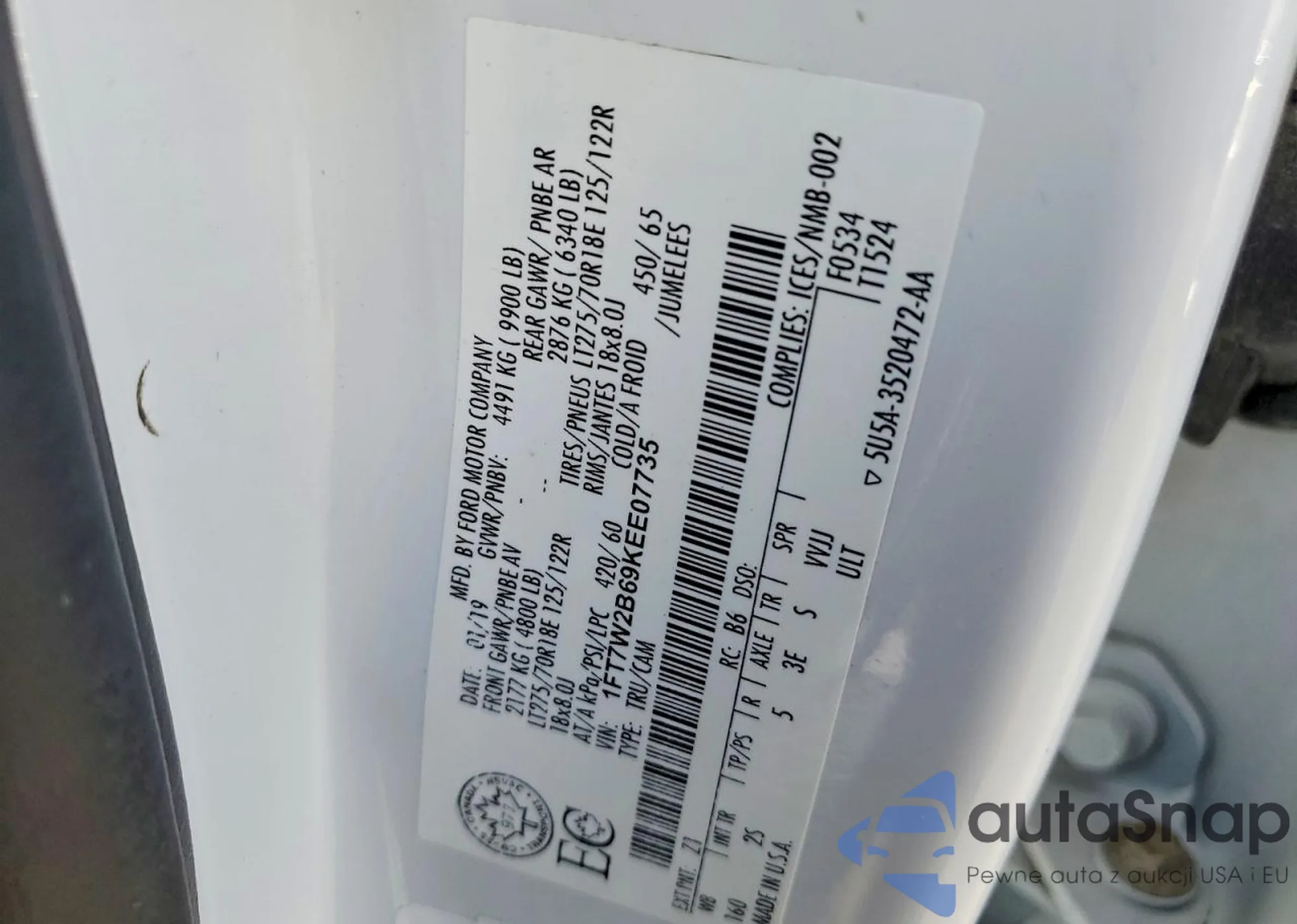 • VIN 1FT7W2B69KEE07735