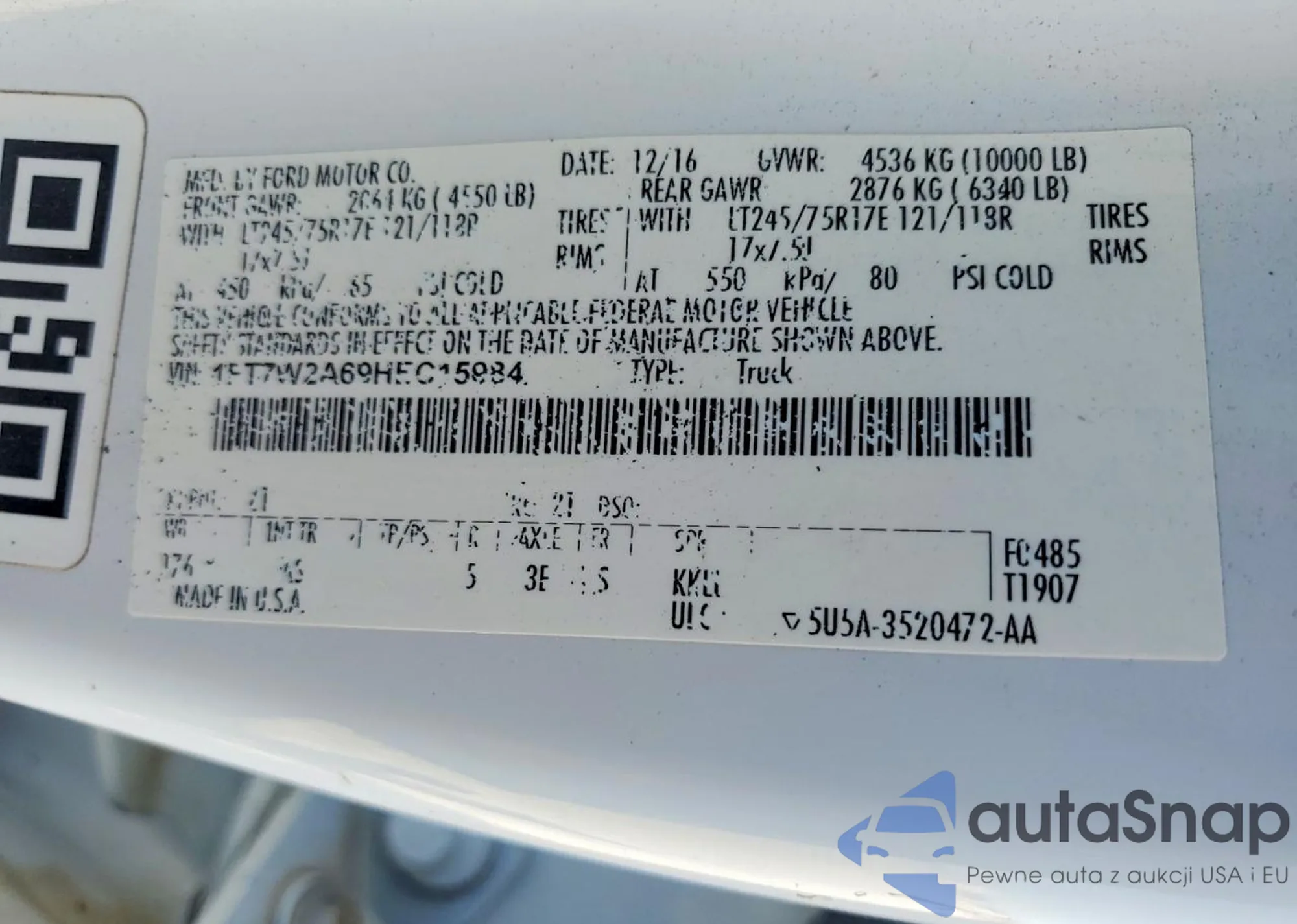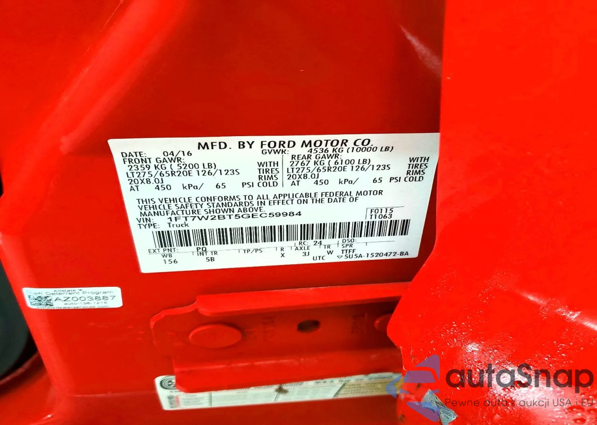 • VIN 1FT7W2BT5GEC59984