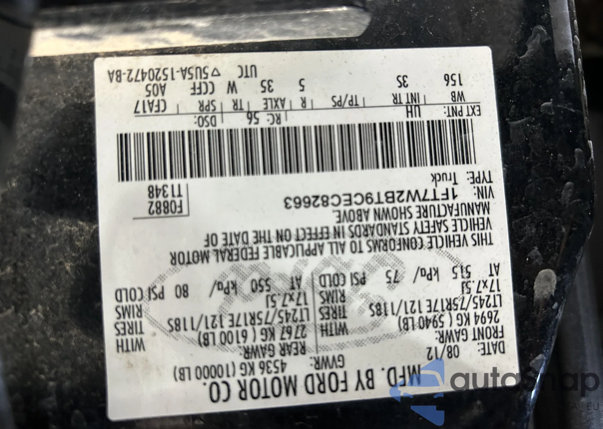 • VIN 1FT7W2BT9CEC82663