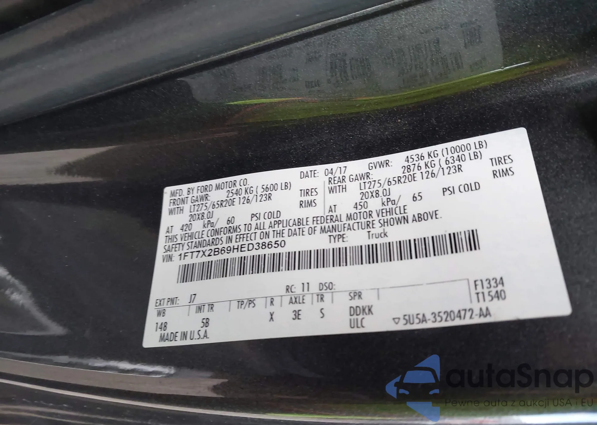 • VIN 1FT7X2B69HED38650