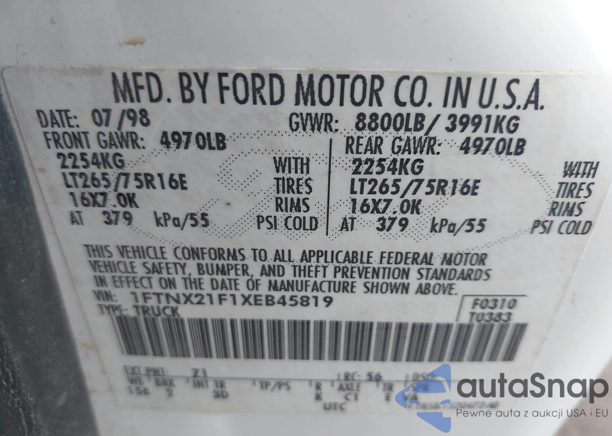 • VIN 1FTNX21F1XEB45819