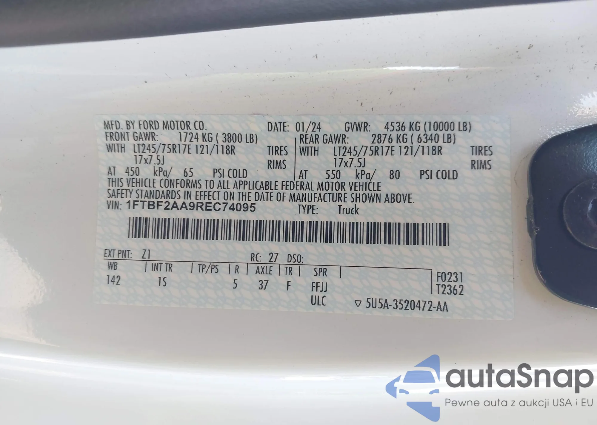 • VIN 1FTBF2AA9REC74095