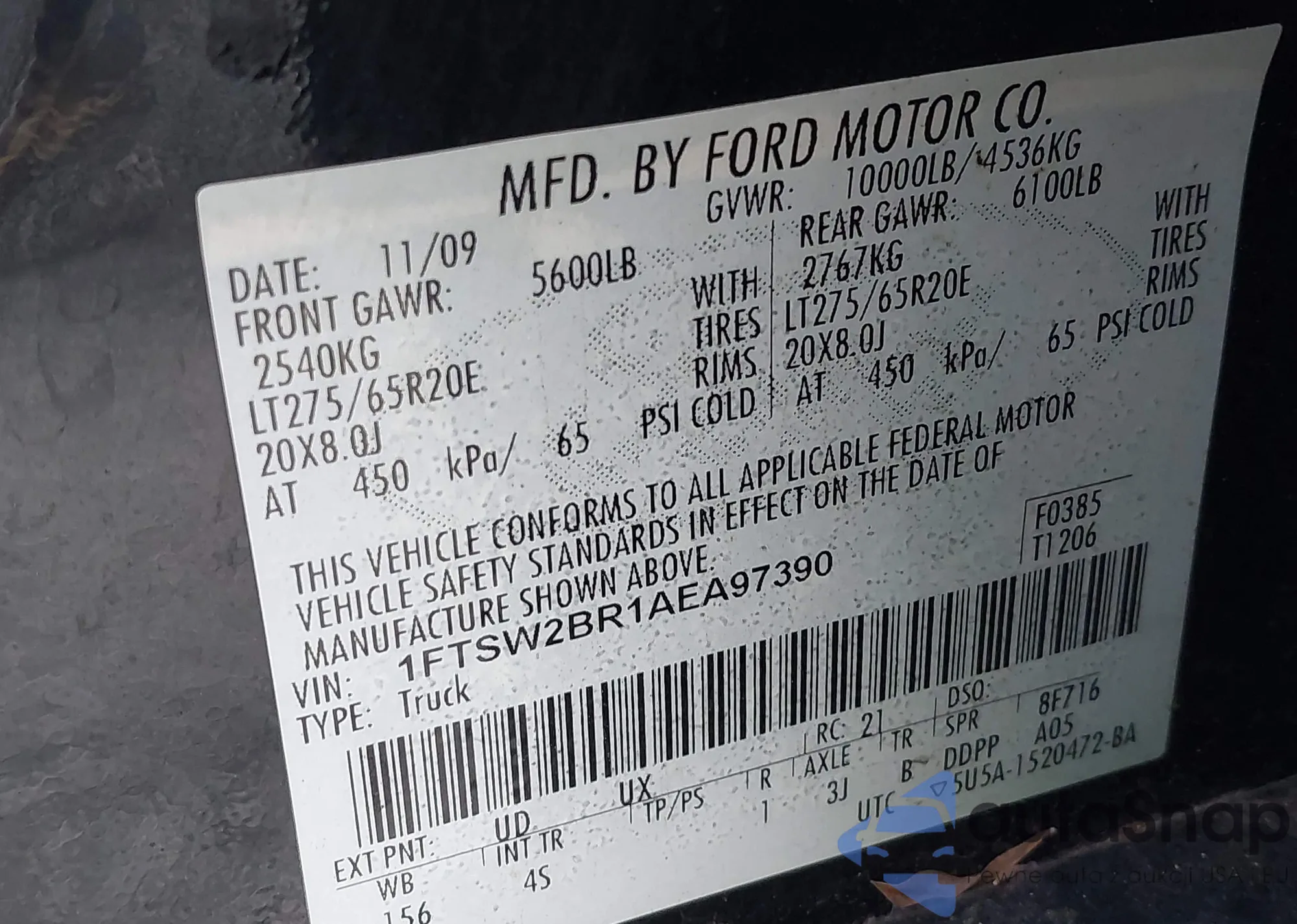 • VIN 1FTSW2BR1AEA97390