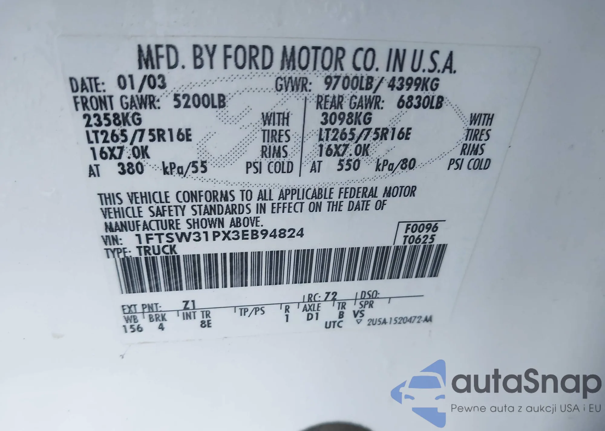 • VIN 1FTSW31PX3EB94824