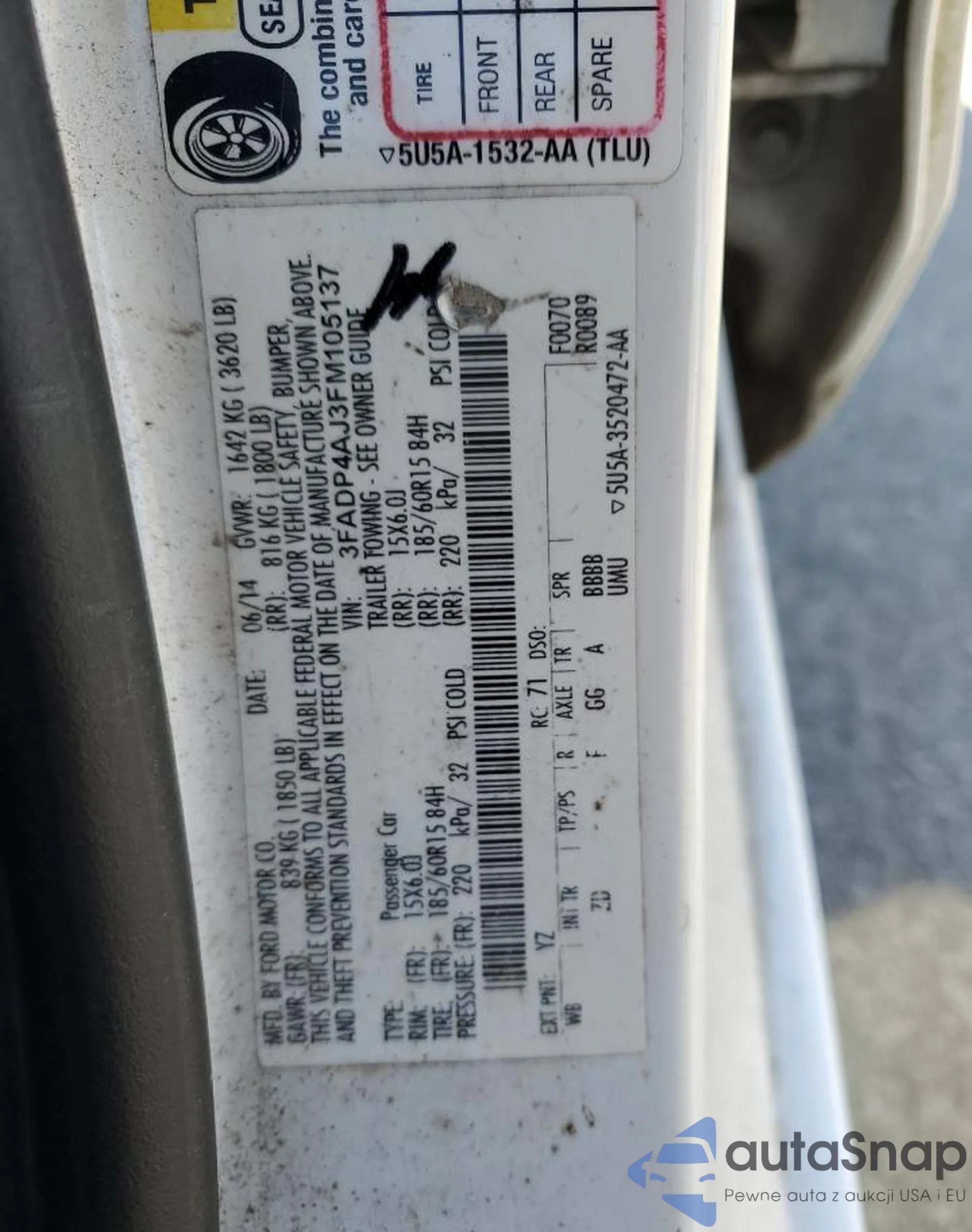 LOT: 90873235 VIN: 3FADP4EJ9FM150111